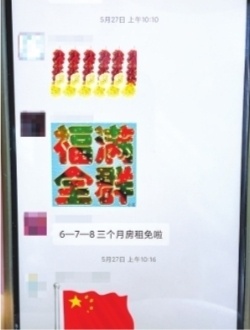 陈先生打开一个商户微信群,记者看到,5月27日上午10时,群里的一位商户发消息“6、7、8三个月房租免啦”,不少商户也发出庆贺表情包。陈先生告诉记者,利济电子通讯市场的租金按月收取,每月15日交租。他的商铺一个月租金约2900元,三个月租金减免下来,可以省不少钱。