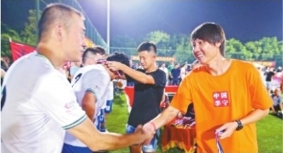 李铁为武汉职工足球赛优胜者颁奖。