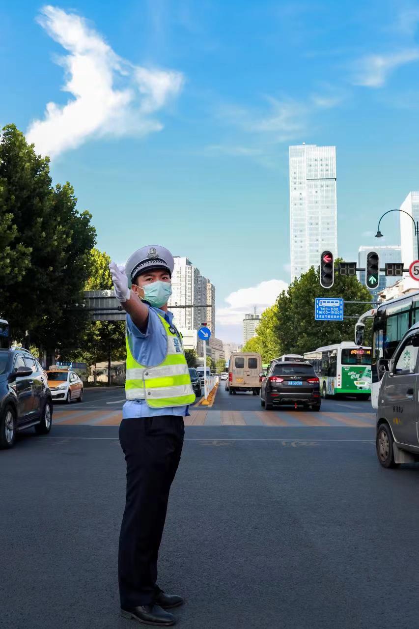武汉交警在主要路口执勤。 通讯员张鹏 摄