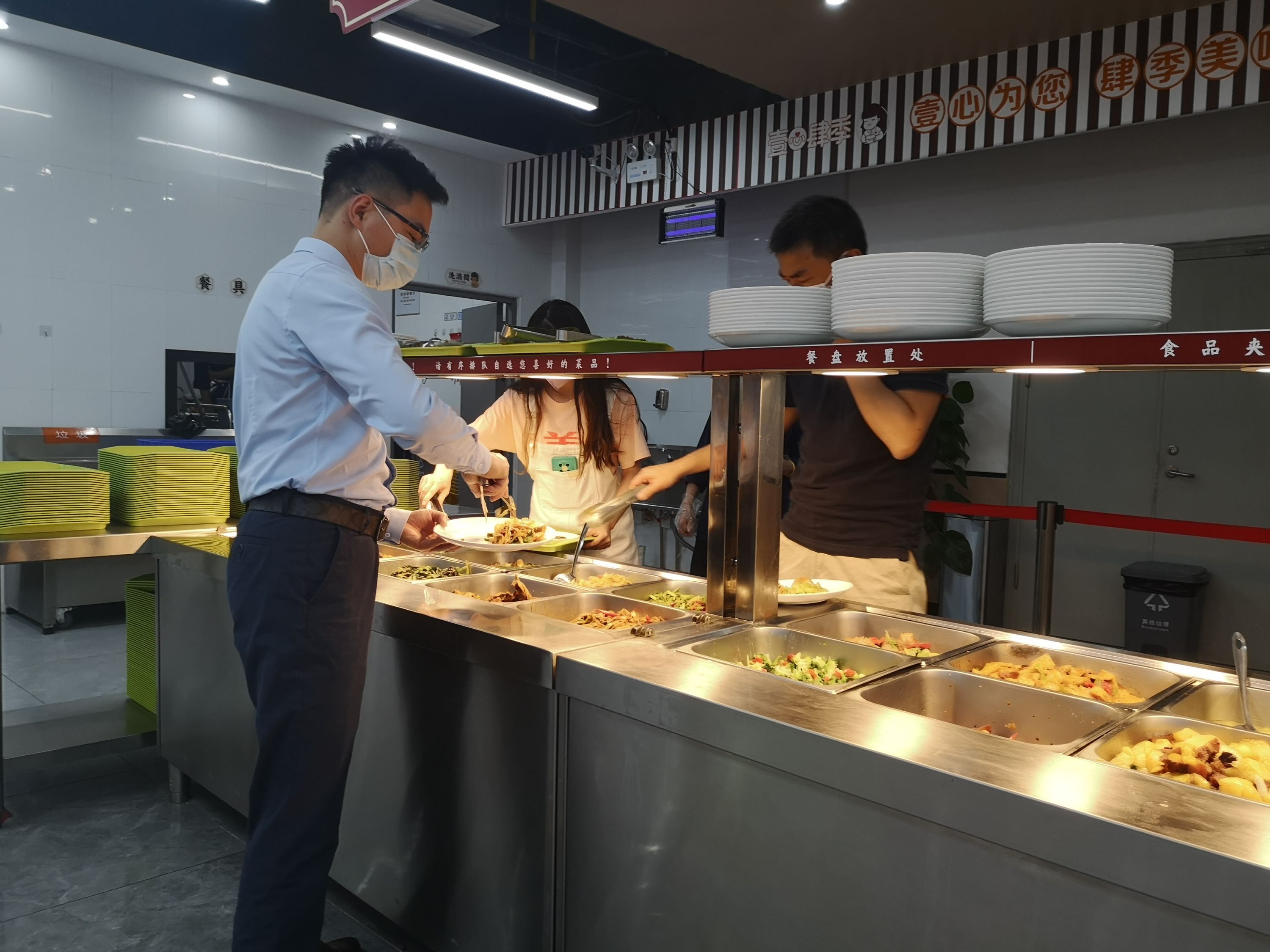 24岁的朱先生是长江期货股份有限公司职员,当天中午他选择了吃自助餐,挑选了17元钱的菜。朱先生告诉记者,以前吃饭需要到楼宇外找地方吃,或者自己带饭在公司加热。楼宇外的餐厅不仅远,而且选择不多。“现在下楼就可以就餐,很方便,菜品每天每餐都不一样。”