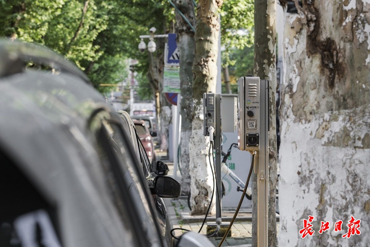 汉口路边停车位旁边的充电桩。长江日报记者胡冬冬 摄