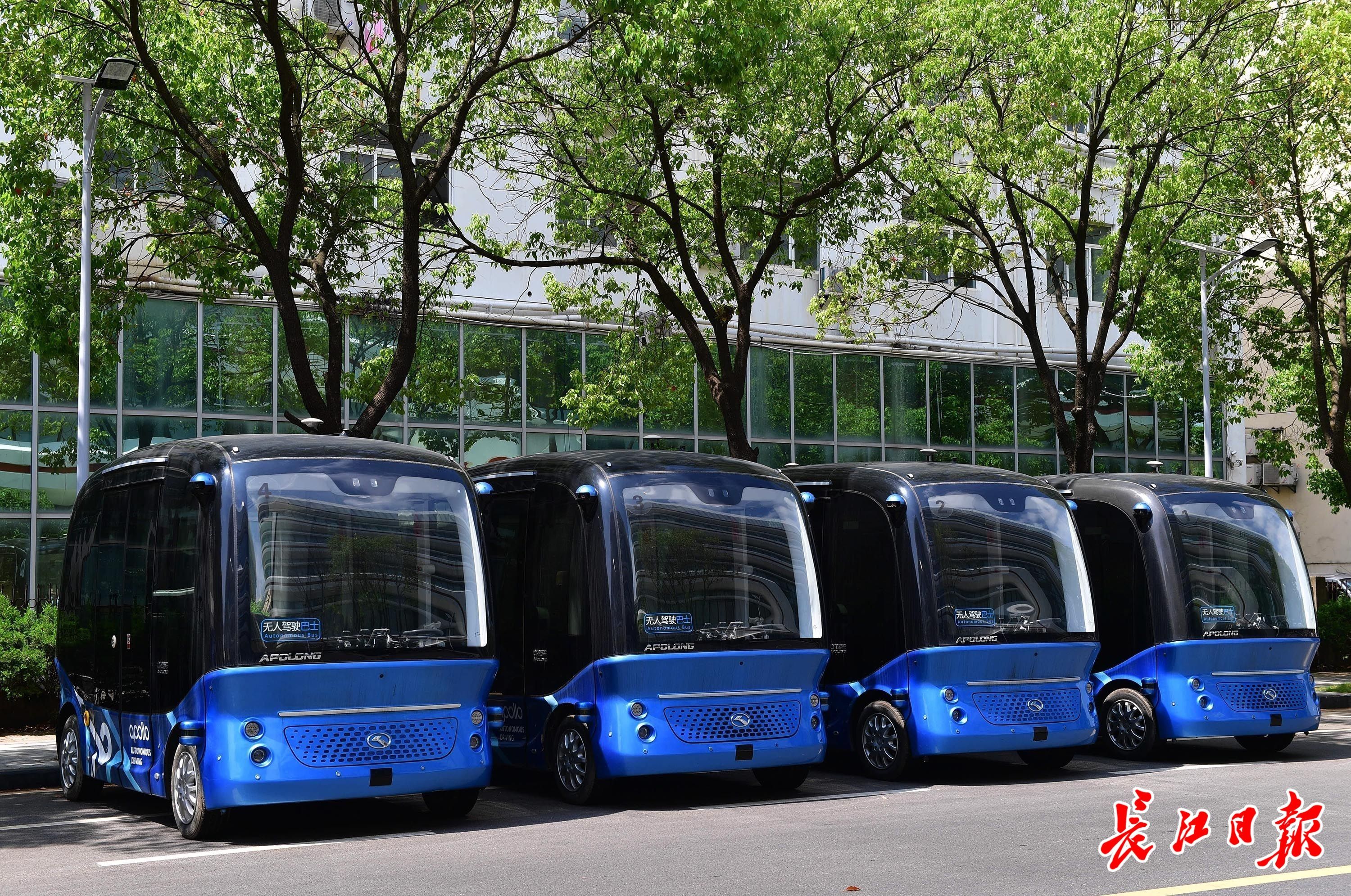 各种无人驾驶载人小巴在园区内进行测试。长江日报记者李永刚 摄