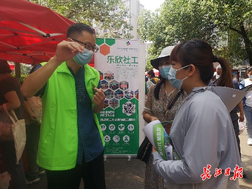 街道社区工作人员与现场的社会组织进行对接。 长江日报记者覃柳玮 摄