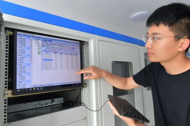 工作人员正在检查各分流井数据。记者刘斌 摄