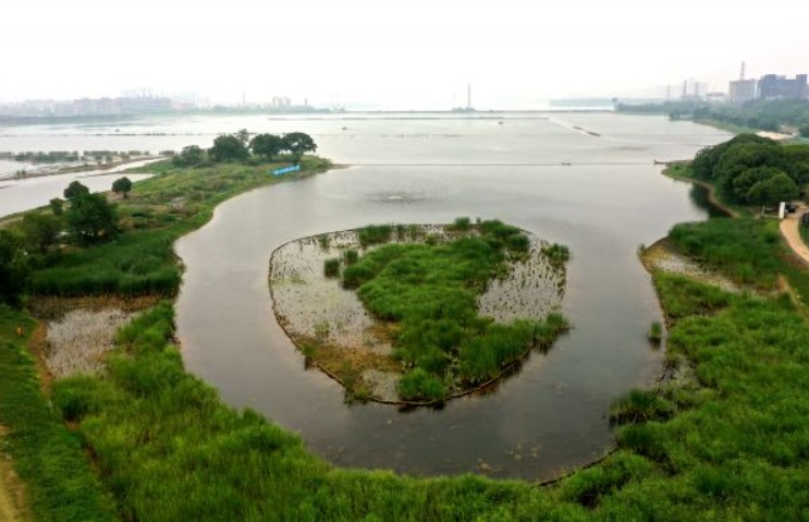 武汉汤逊湖流域综合治理一期示范段红旗湖湿地。记者刘斌 摄