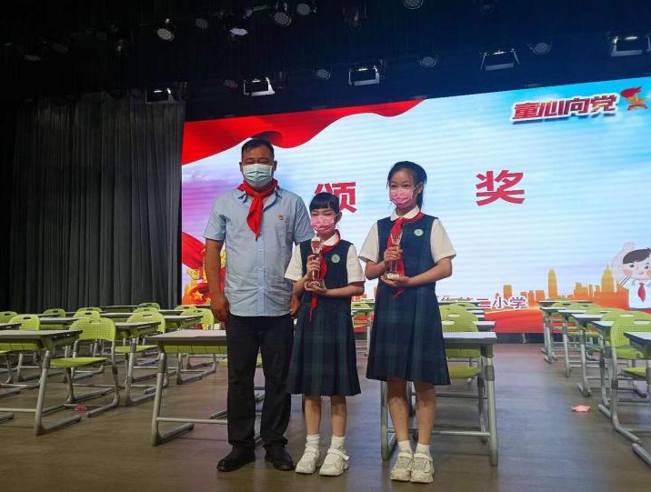 福建社区书记张斯辉和工作人员也加入到孩子们中间,为优秀学生代表颁奖并为他们送上学习用品,鼓励孩子们要有理想信念,有道德情操,有扎实知识,要爱党爱国。