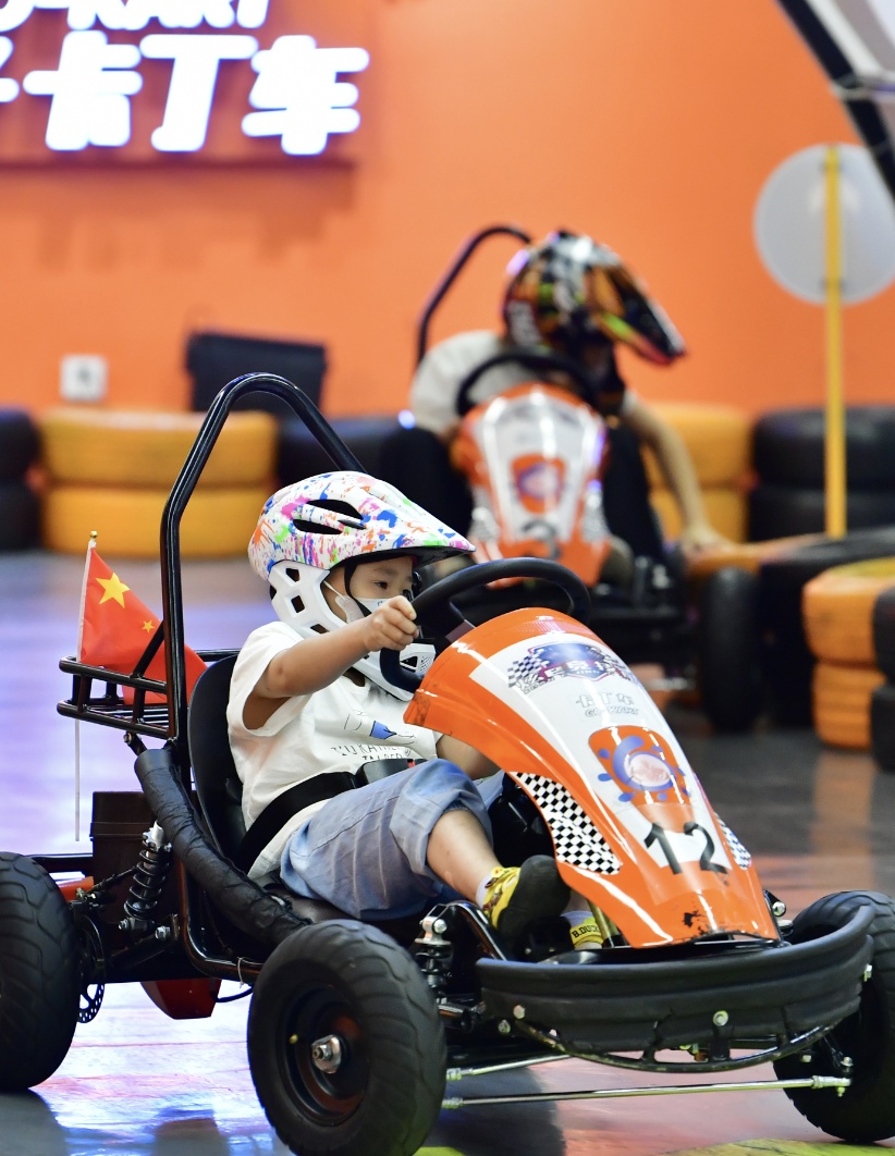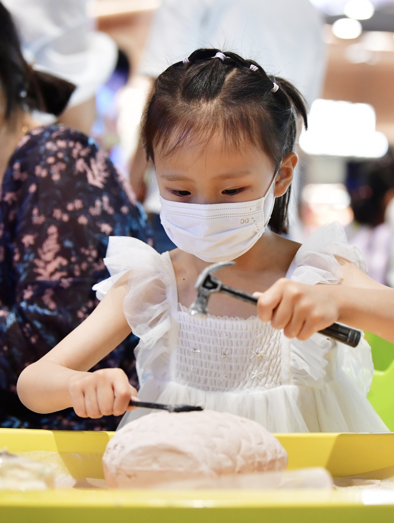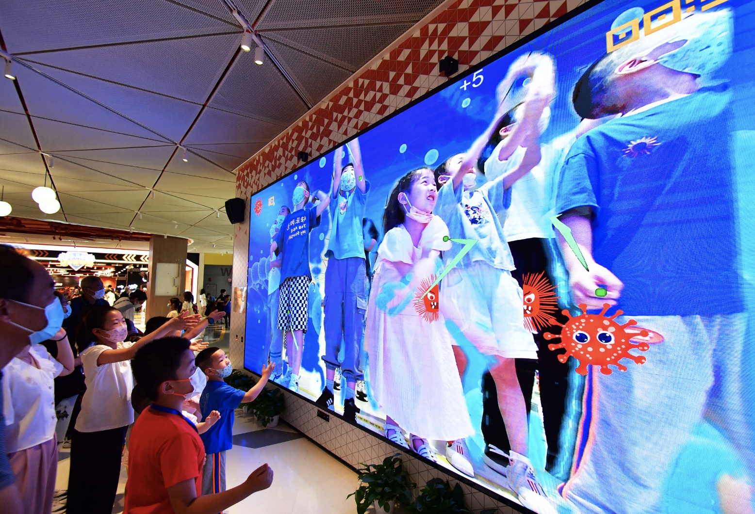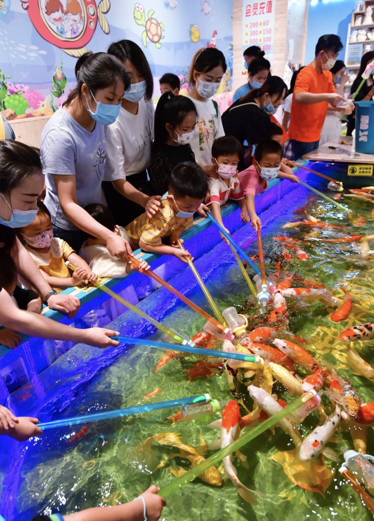 6月1日,在硚口荟聚中心,因为下雨的原因,室内娱乐成了孩子们六一节的游乐主题。