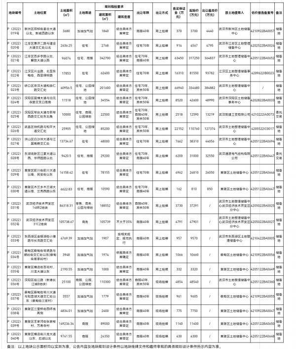 长江日报大武汉客户端6月1日讯(记者龚萍)5月31日,武汉市2022年第二批集中供地公告如期发布,此次共推出房地产用地22宗,土地总面积约64.80公顷,总建筑规模约144.65万平方米,起始价总额约119.3亿元,项目将于6月29日集中揭牌。