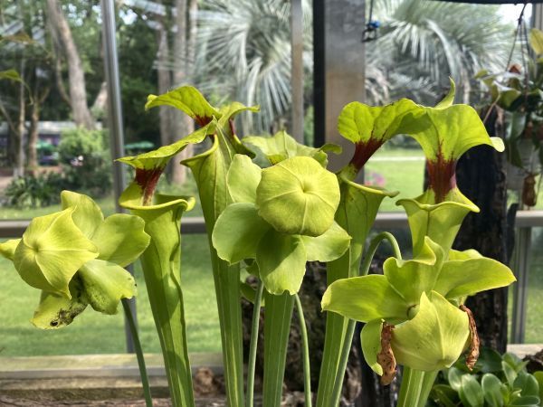 捕虫堇叶片正面布满了腺体,能分泌黏液和消化液,当有蚂蚁、蚊子等小昆虫来到叶片上时,会被粘在上面,捕虫堇就可以捕捉并消化昆虫……科普讲解员精彩的解说让小朋友进入了食虫植物的神奇世界。家住徐东的徐瑞莹小朋友说:“我最喜欢捕蝇草,小虫子一进来就触发了它的机关,然后被关押在里面,慢慢被消化。它是一种充满智慧的植物。”