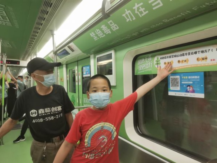 长江日报大武汉客户端6月1日讯 6月1日,上小学的肖同学和爷爷一起出行,一上地铁就赶上了“禁毒地铁专列”,他兴致勃勃地和爷爷玩起禁毒防毒问答游戏,边玩边开心地说,“这个车厢真棒,有趣又能学到禁毒知识。”