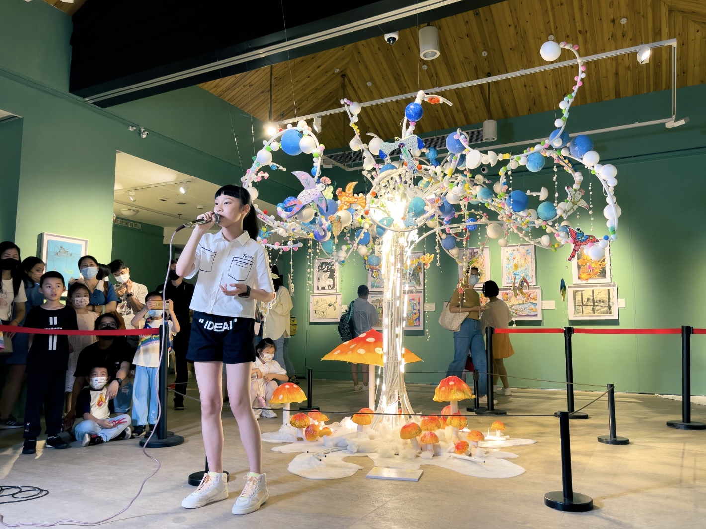 长江日报大武汉客户端6月1日讯(记者范雅琴)“六一”儿童节是孩子们的节日,在这一天,不少家长带孩子来武汉美术馆看展。目前,《“艺”想天开·2022国际少儿视觉艺术展》正在馆中展出,400余件来自全球的儿童绘画作品和美术装置让人仿佛置身于奇妙瑰丽的童话世界。6月1日下午,长江日报“可视电台”儿童节专场来到艺术氛围浓厚的武汉美术馆4号展厅,以“一颗有生命力的树”的美术装置作为幕布欢乐开唱,音乐人和小朋友伴随着音符的律动快乐过节。
