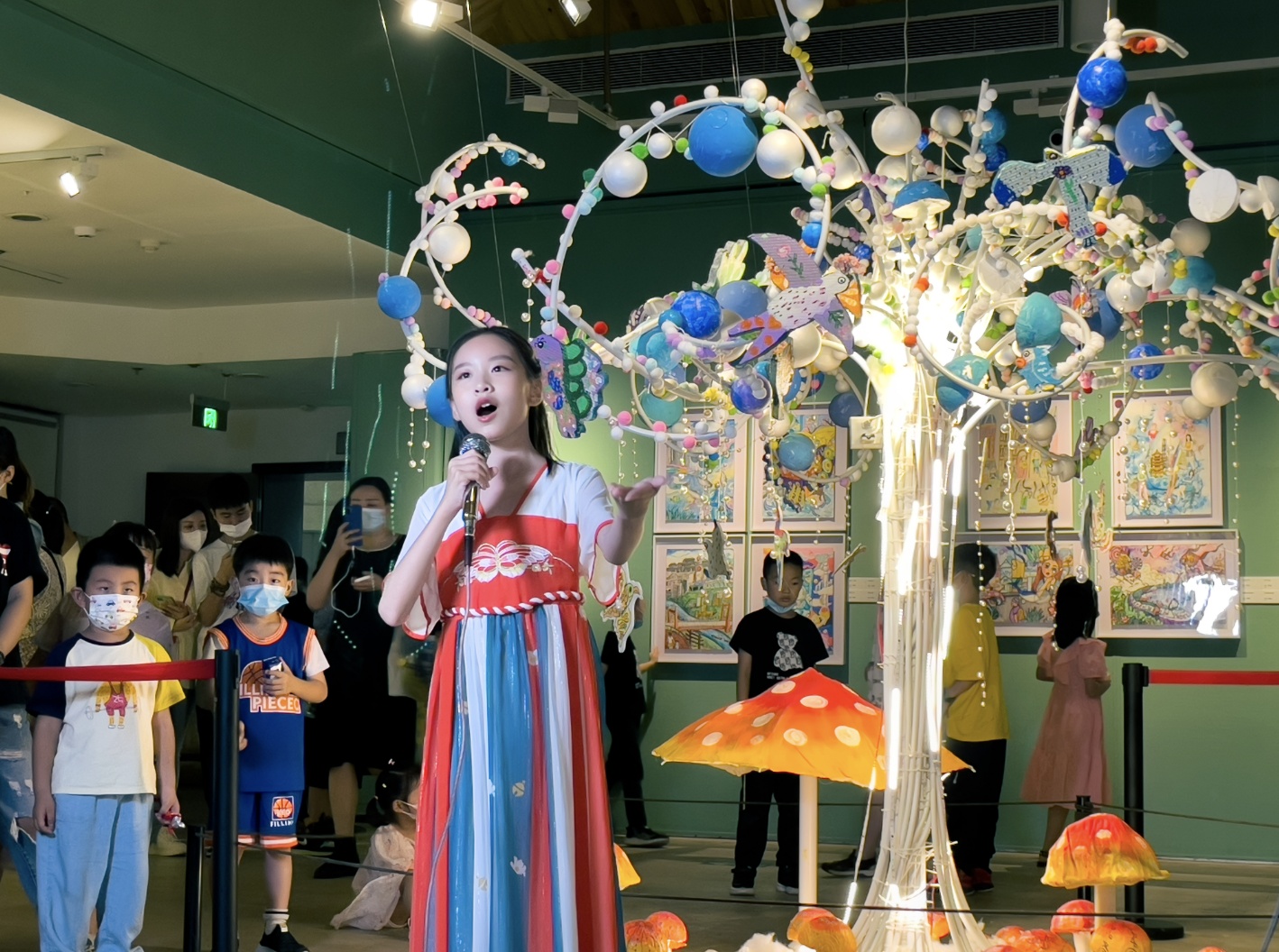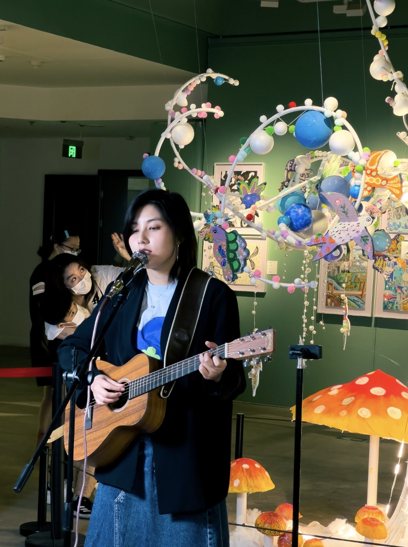 “池塘边的榕树上,知了在声声叫着夏天;操场边的秋千上,只有蝴蝶停在上面......”当天,武汉资深音乐人余永黎以一首《童年》将现场气氛推向高潮,小朋友们手牵手迈着轻盈的步伐在展厅跳起了舞。此外,原创弹唱女歌手小晴儿、美女弹唱歌手赵钱钱也带来《青春修炼手册》《蜗牛与黄鹂鸟》《稍息立正站好》《少年》等多首朝气蓬勃、正能量满满的歌曲,她们表示:“希望大家永远开心,永远都是最初的少年”。