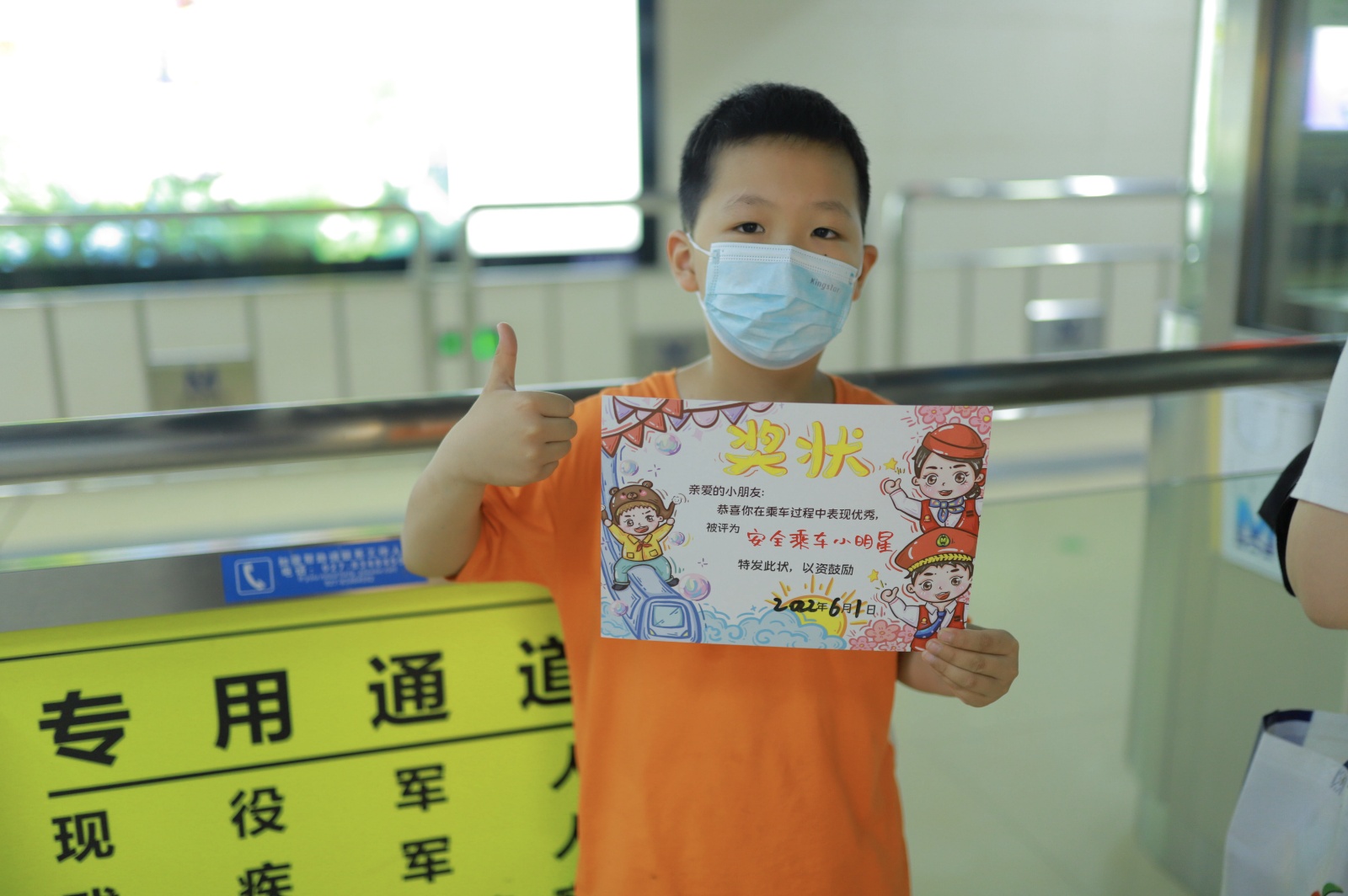 小朋友在园林路站领取“安全乘车小明星”奖状。通讯员闫克昂 供图