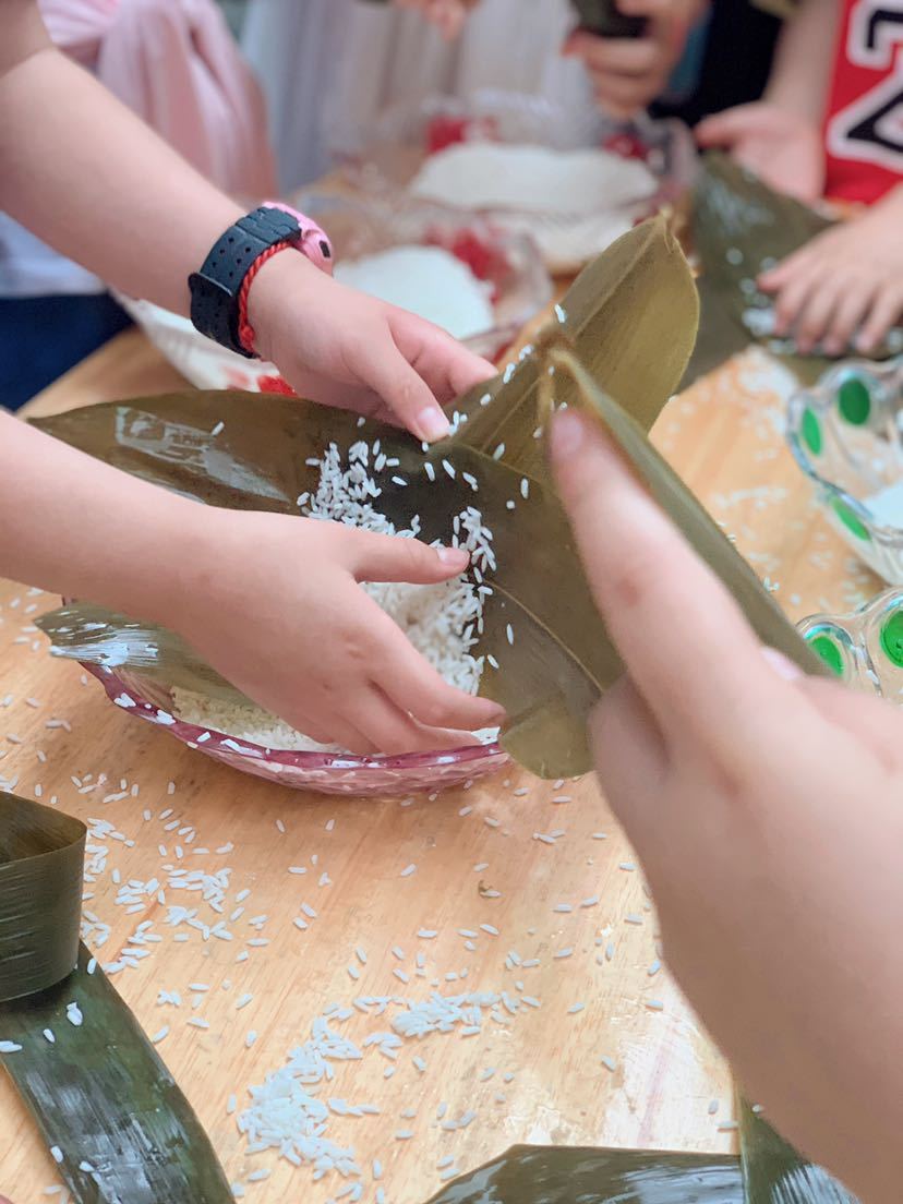 “浓情端午、欢乐‘六一’自己动手包粽子。” ——@小平安