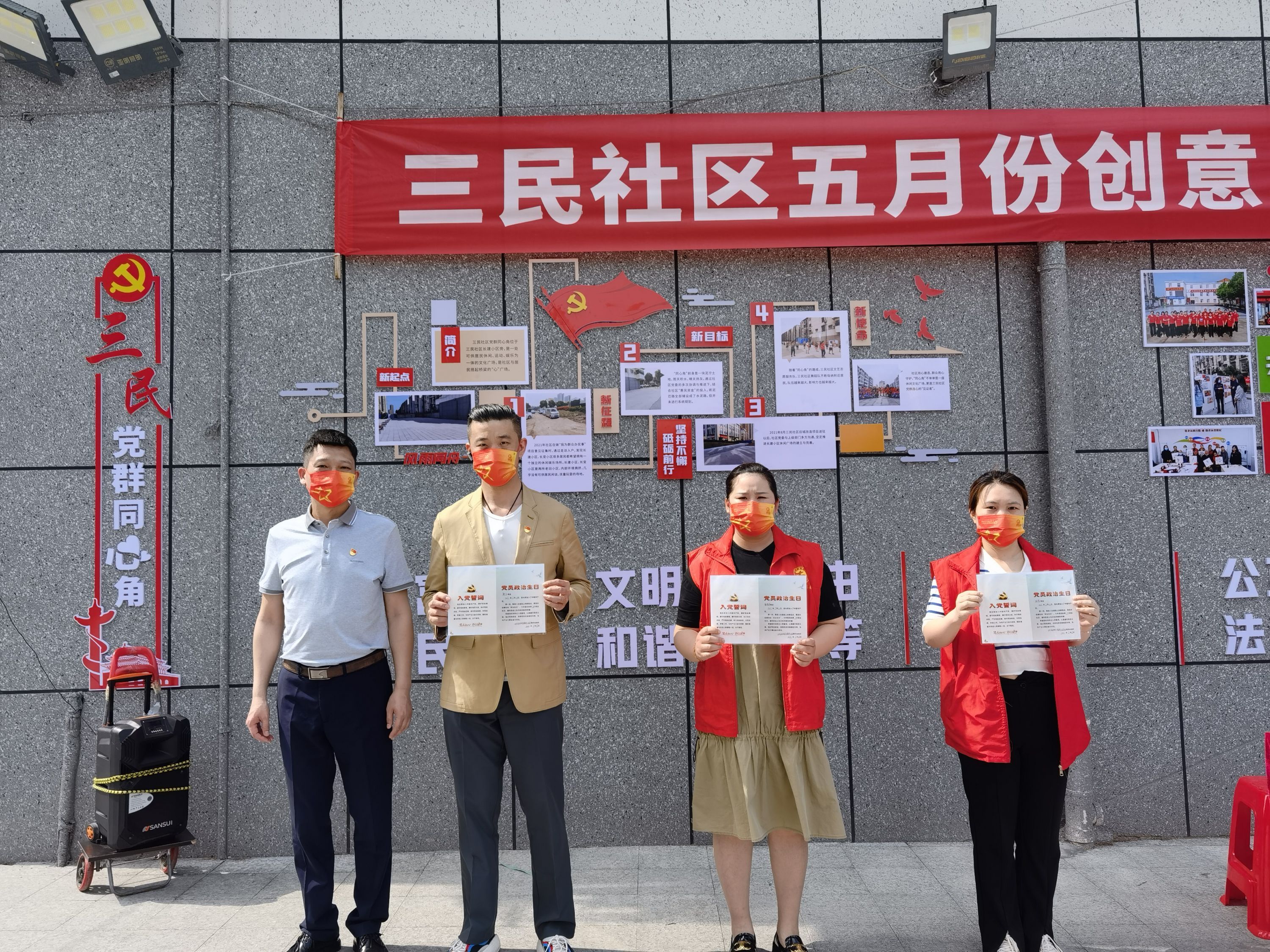 在社区党委的号召下,各支部党员加入三民社区党群同心志愿服务队,并做出承诺:将践行使命,带领志愿者团队,服务社区。