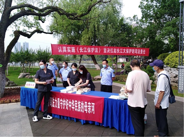 省生态环境厅驻鄂东生态环境监察专员办、武昌区人民法院、武昌生态环境分局、紫阳街道办事处等单位的工作人员,以及武昌区环保志愿者协会的环保志愿者代表,在活动现场向居民群众发送环保宣传资料图册及环保宣传品。