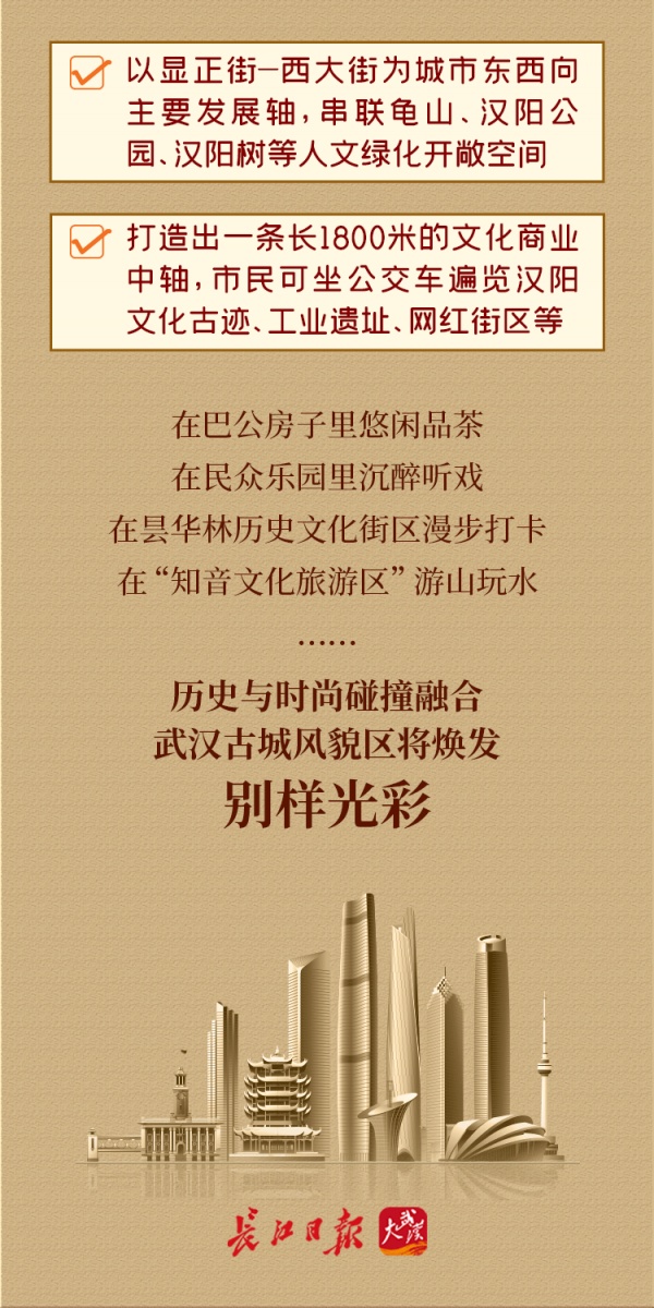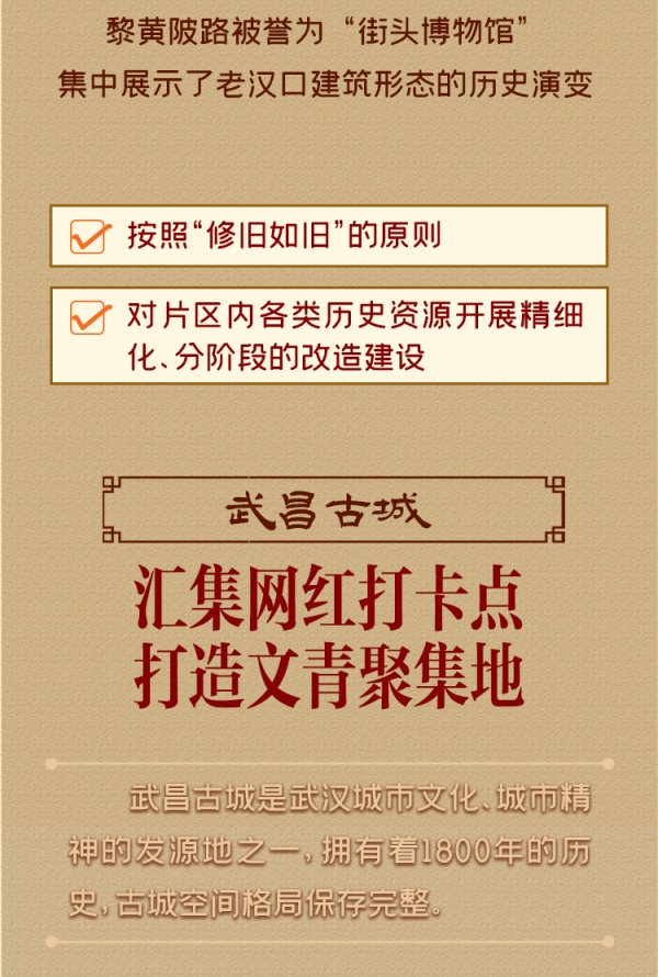 武汉将通过“文化+”战略引入新功能、新业态、新经济,实现三大古城风貌区整体保护与功能更新。
