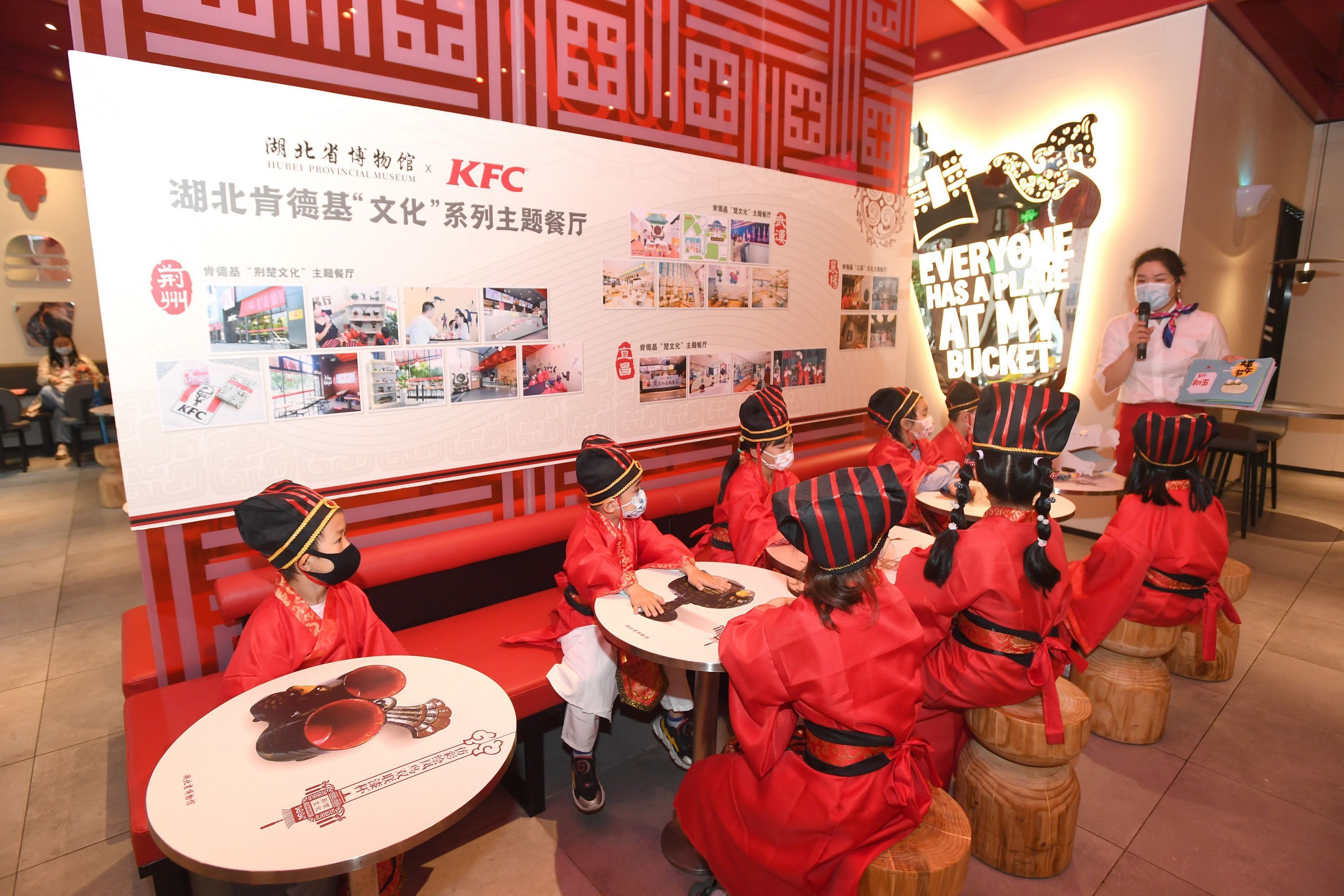 在2018年,湖北省博物馆与武汉汉街肯德基推出了“楚文化”主题餐厅, 打造“楚文化青少年科普基地”,取得了良好的社会效益。2020年10月,为带动湖北文化旅游业复苏,肯德基联合襄阳博物馆打造了“三国文化”主题餐厅, 2020年11月,湖北省人民政府与百胜中国在上海进博会期间签署战略合作框架协议。百胜中国旗下肯德基品牌在湖北荆州、宜昌分别开设了“荆楚文化”和“楚文化”主题餐厅。