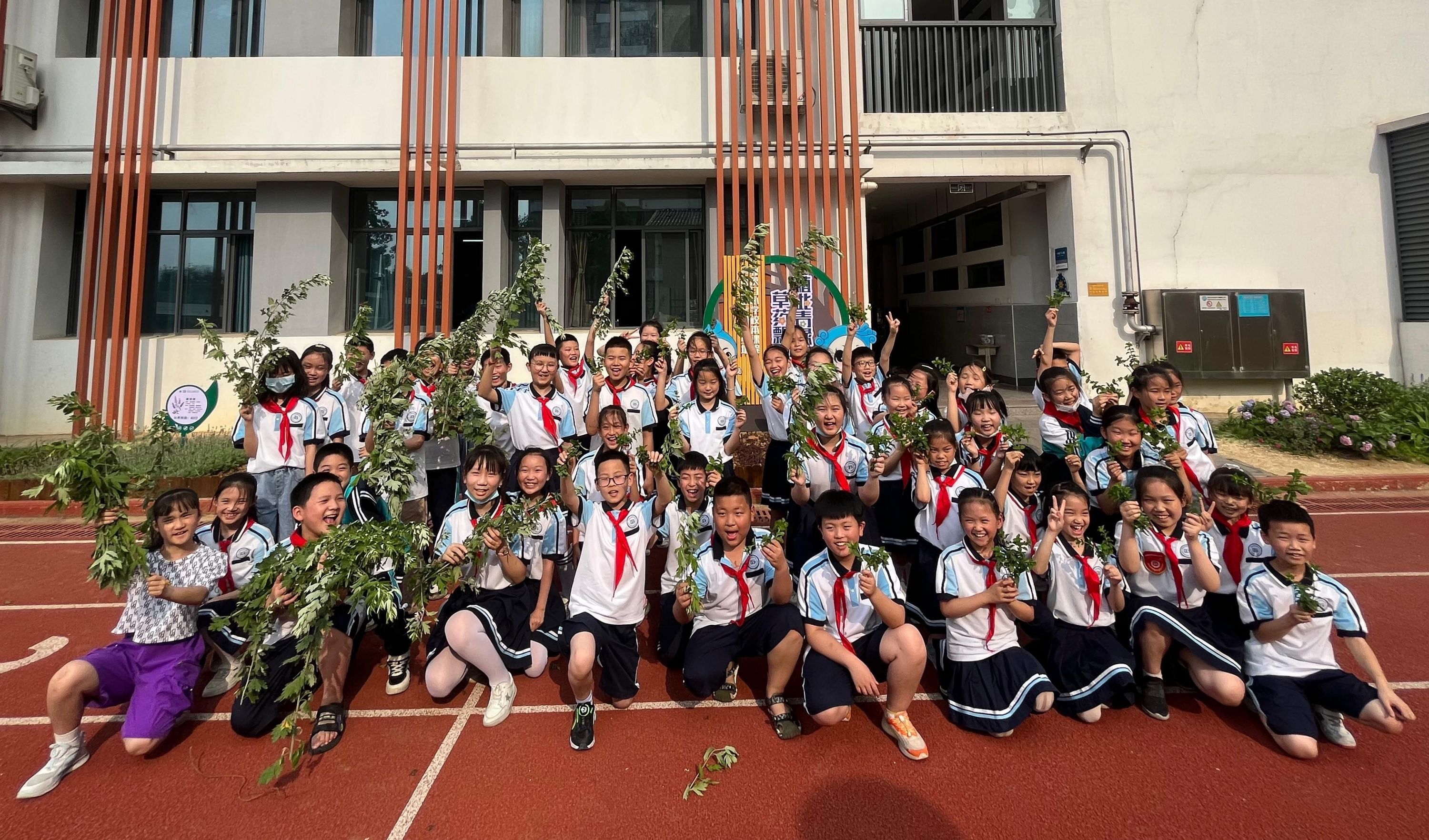郭茨口小学的同学们收获自己种植的艾草。 通讯员赵谦 摄