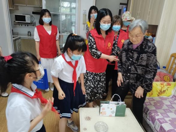 光谷二十一小学生陪社区独居老人过端午。 通讯员于璐 周文君 摄