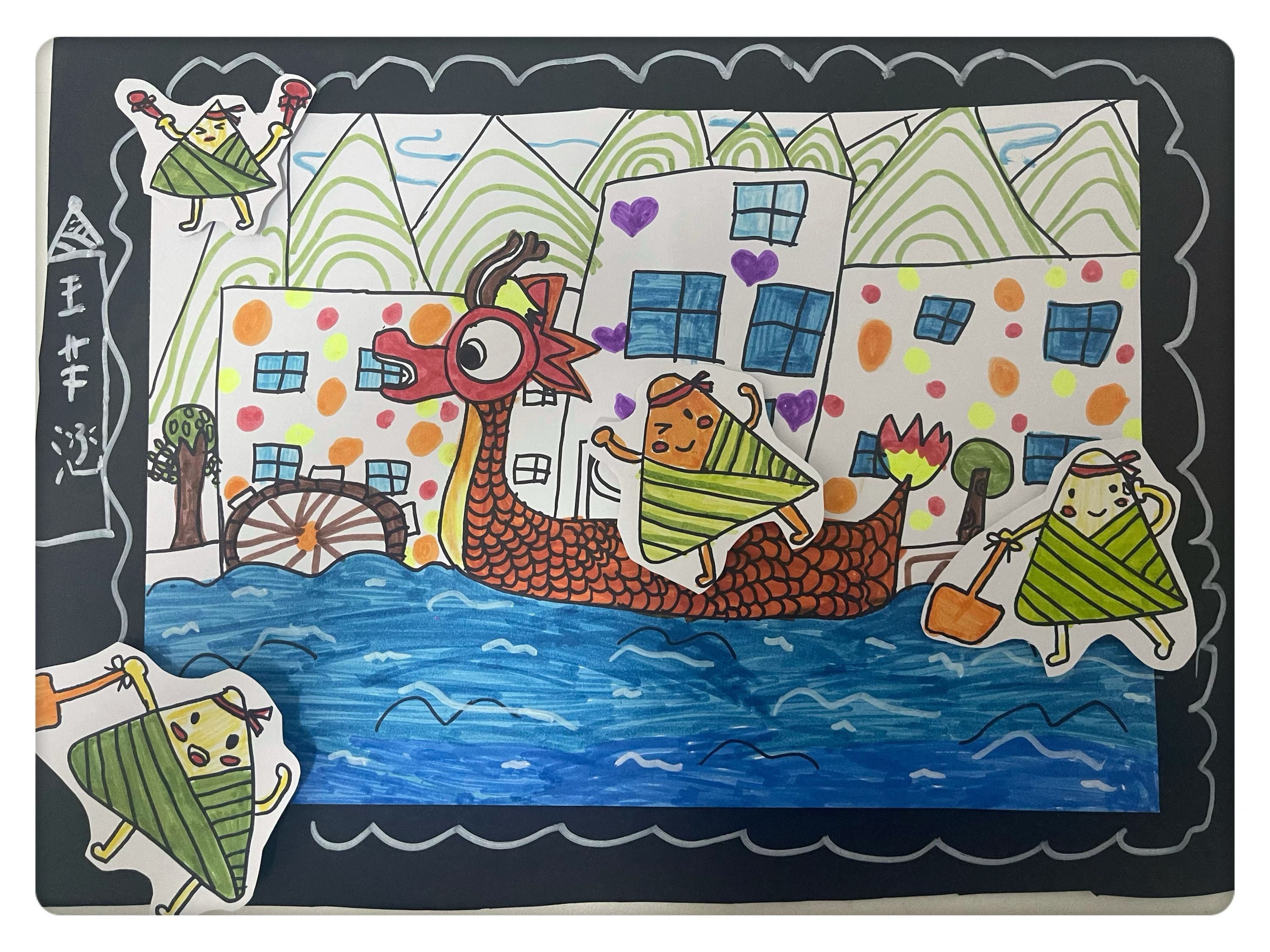 稚雅幼儿园的小朋友们画的“粽子划龙舟”。 通讯员郑璇 摄