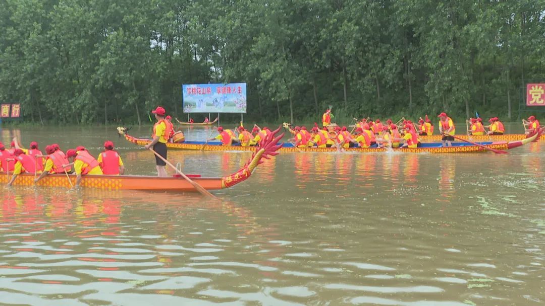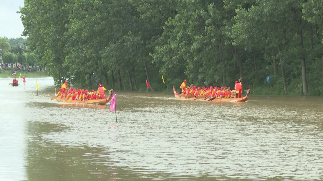 龙舟飞渡,激起千层浪。当比赛的鼓声响起,参赛的三支龙舟似箭一般冲出起点,顿时,龙舟上紧凑有力的鼓声和岸上群众震耳的呐喊声交织在一起,回荡在水面上。队员们在鼓声的号召下奋力挥桨,一艘艘龙舟劈波斩浪,奋勇争先。