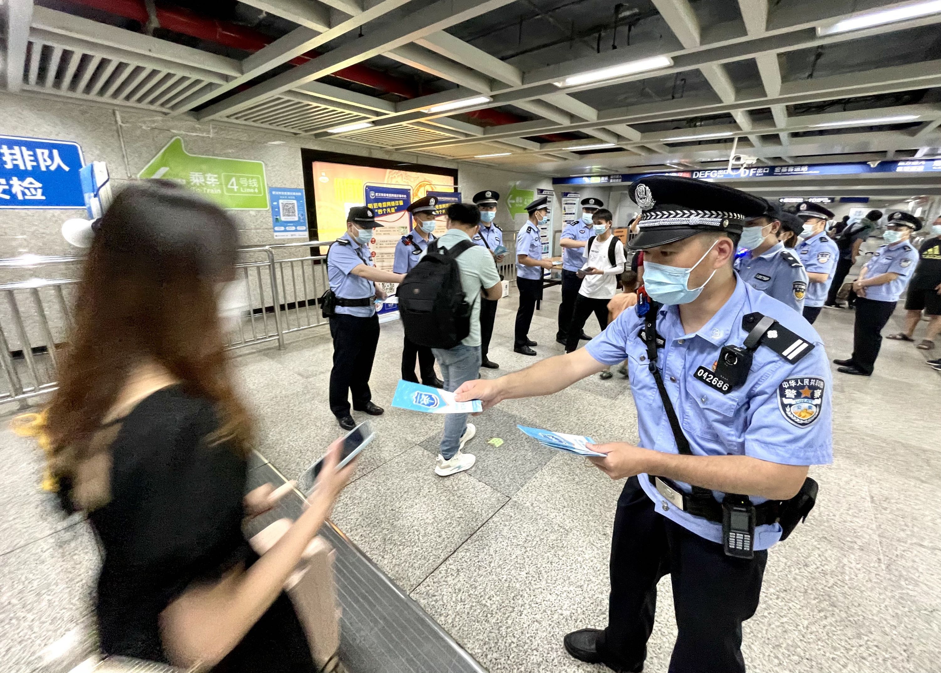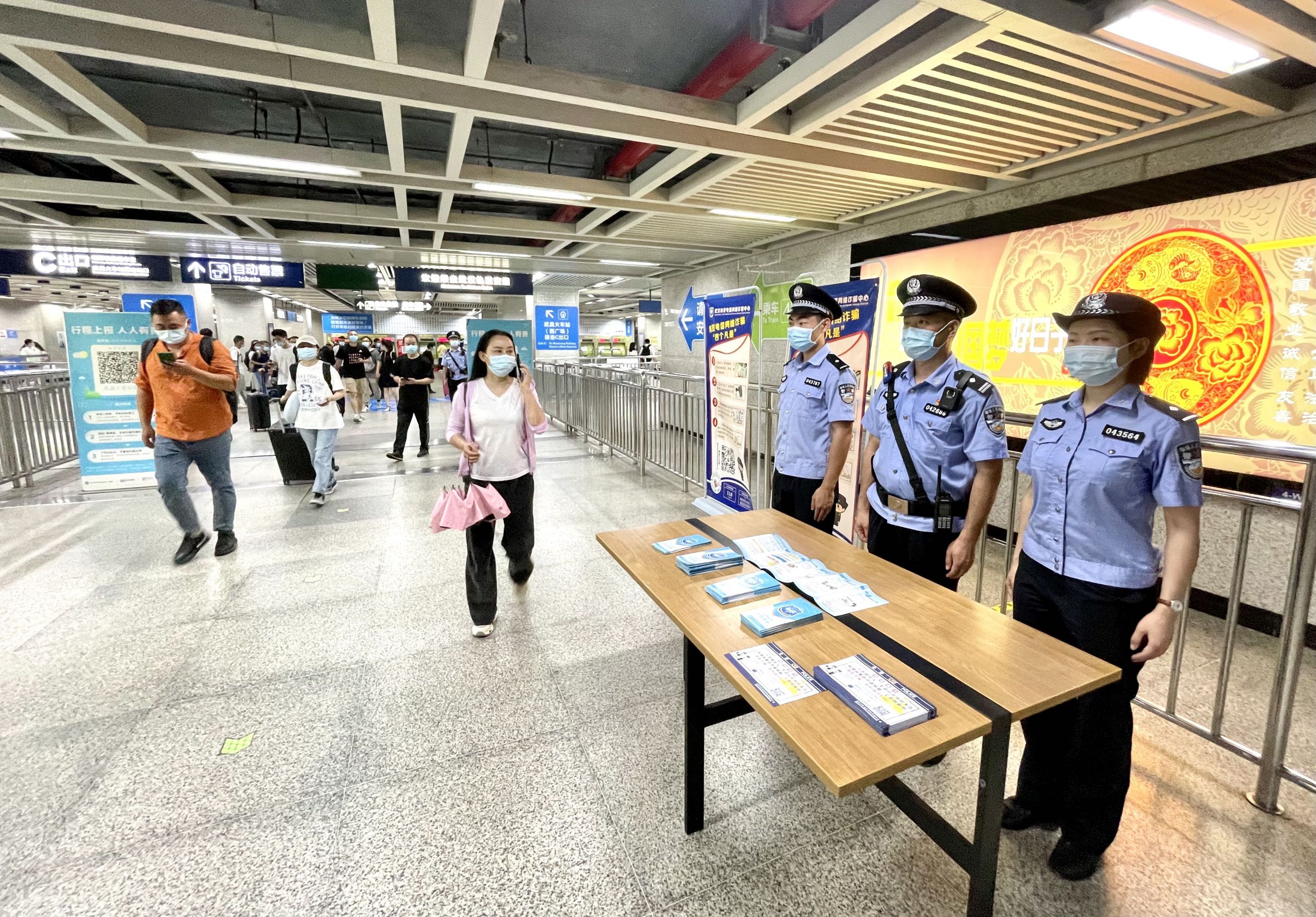 民警在地铁站内开展反诈宣传活动。记者李彤 摄