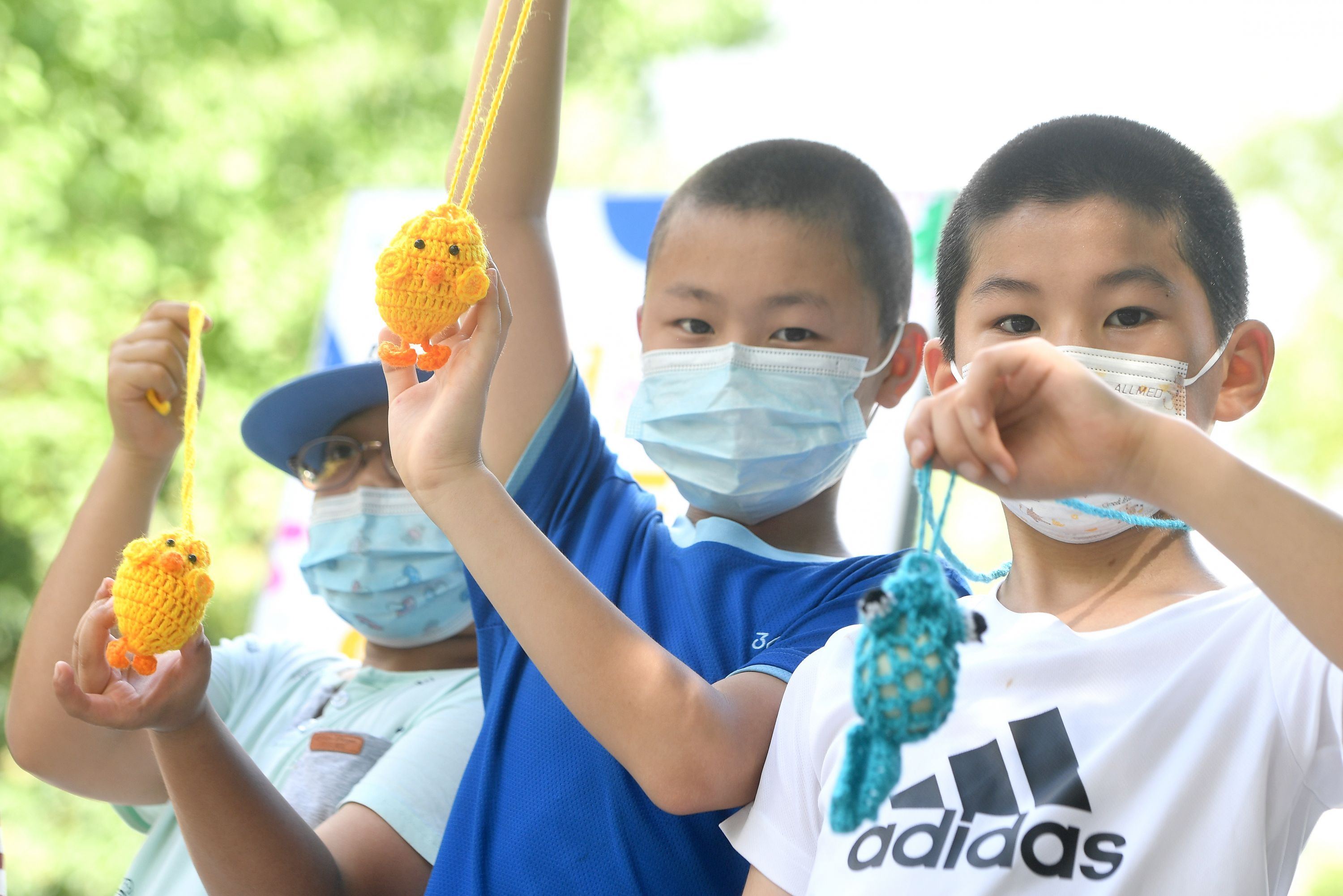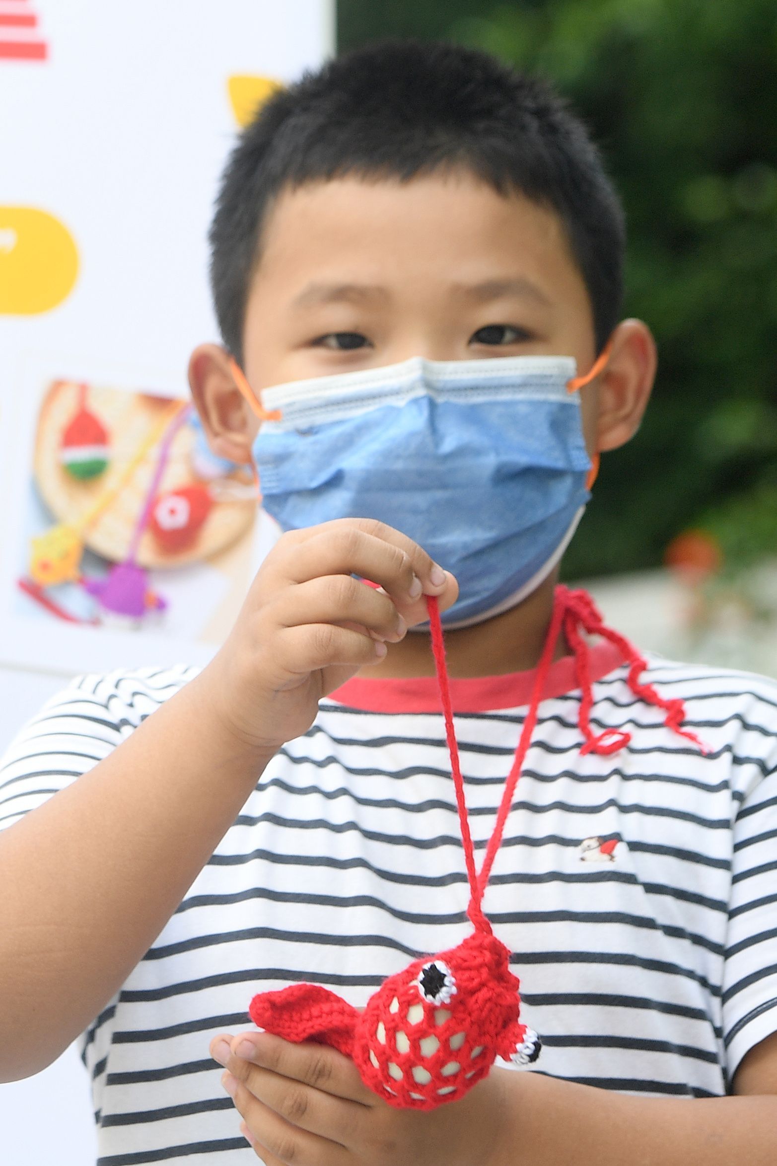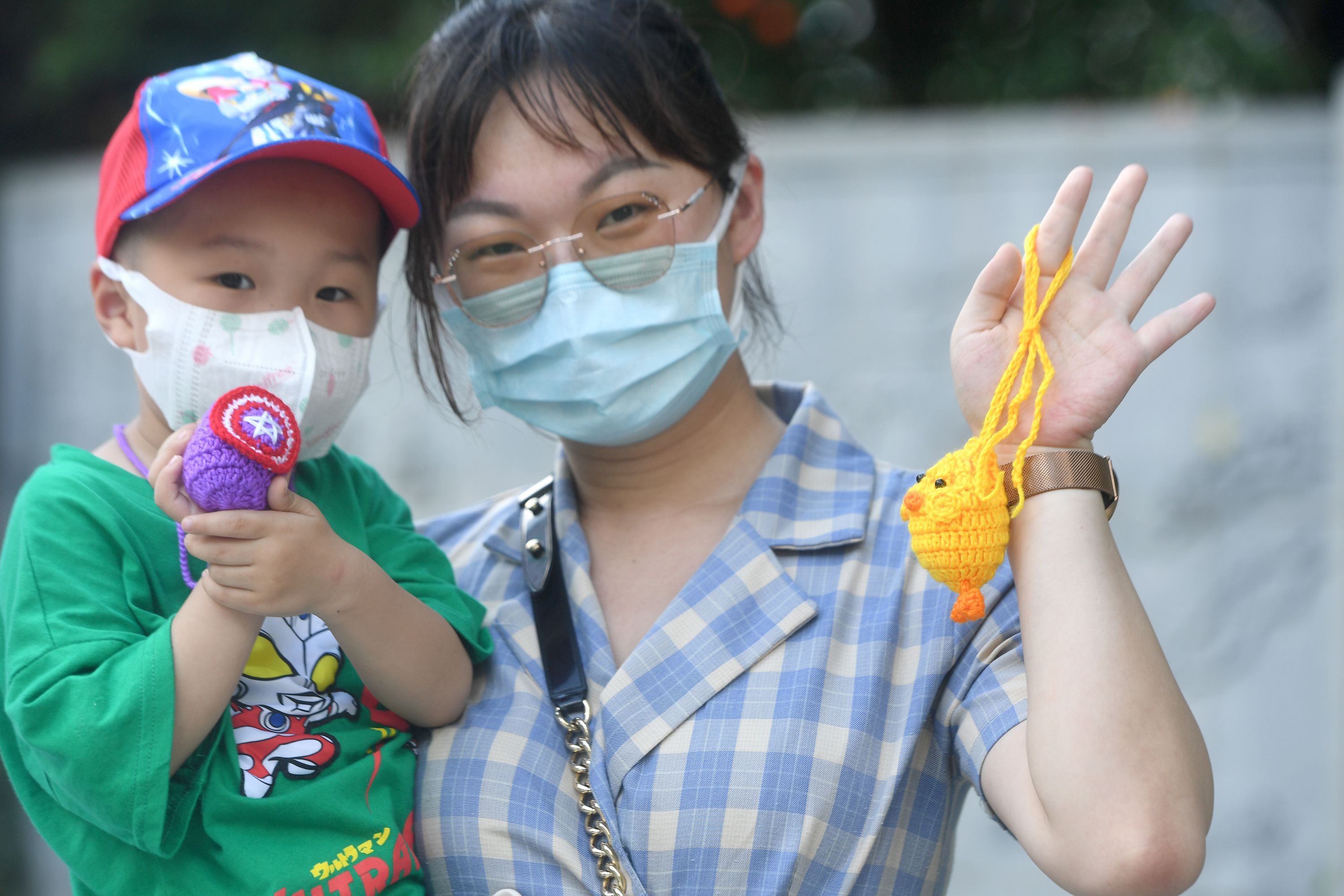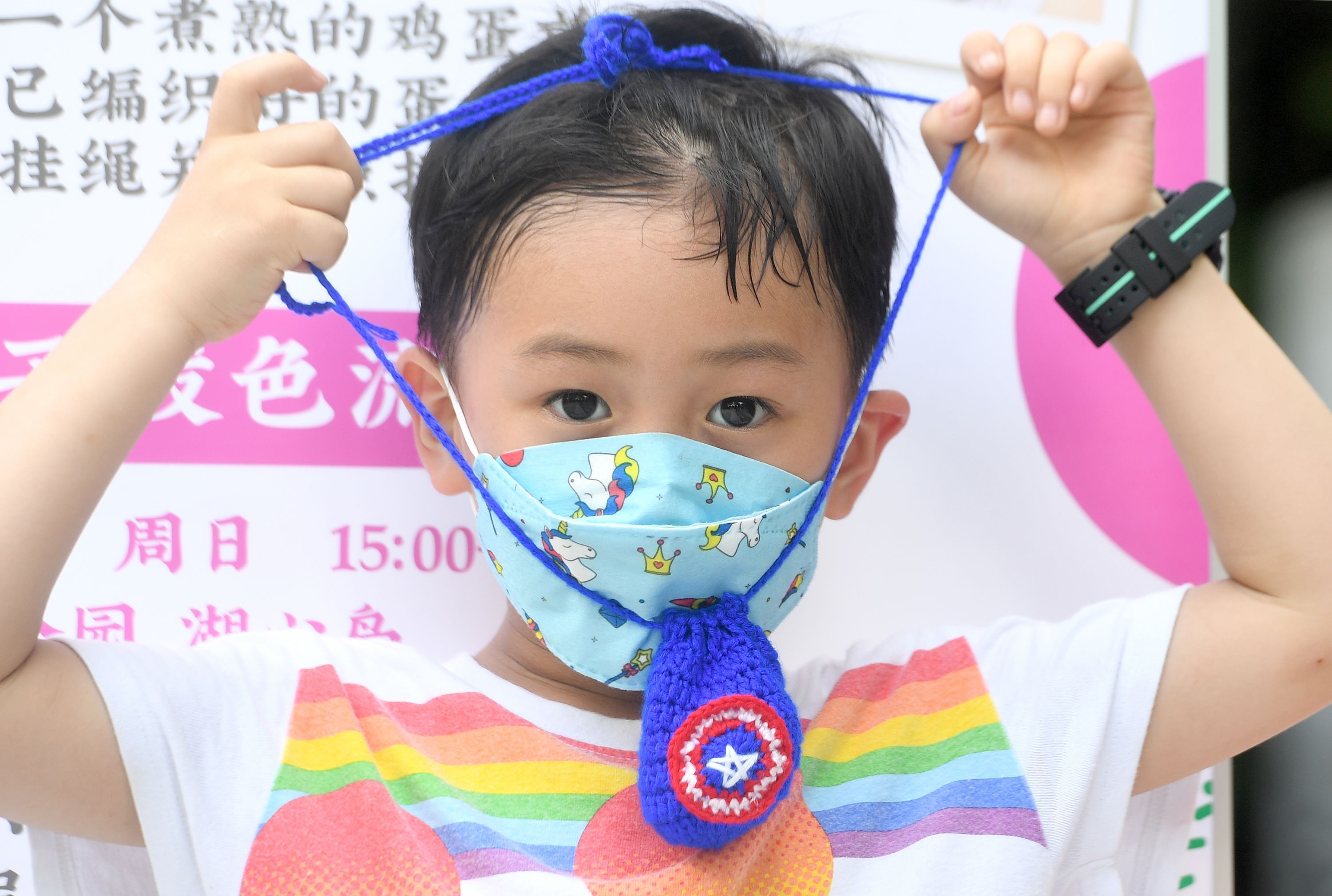 长江日报大武汉客户端6月3日讯 端午挂蛋兜是中华民族的传统习俗,蕴含丰富的文化内涵。2022年6月3日端午节,江岸区宝岛公园的市民胸前挂着红的、蓝的、五彩的和卡通造型的蛋兜,蛋兜里装着的一枚白煮蛋是参加“斗蛋”比赛的“武器”,用体验的方式了解我们的节日——端午。