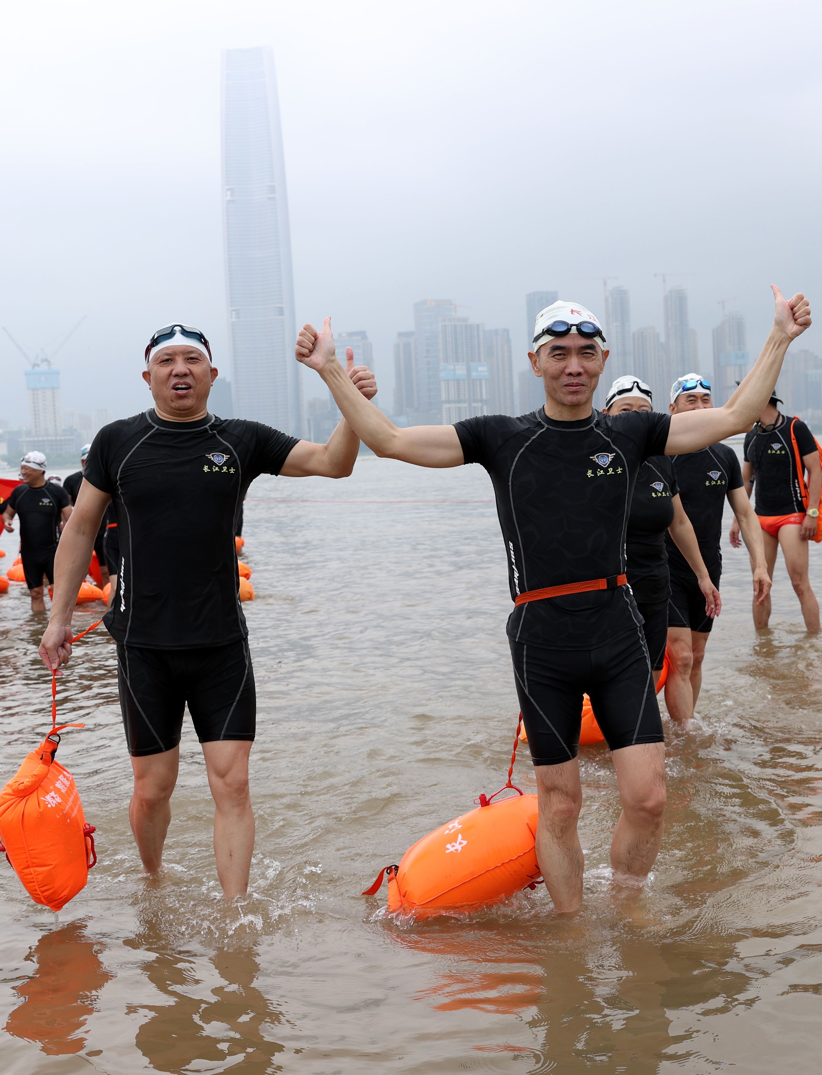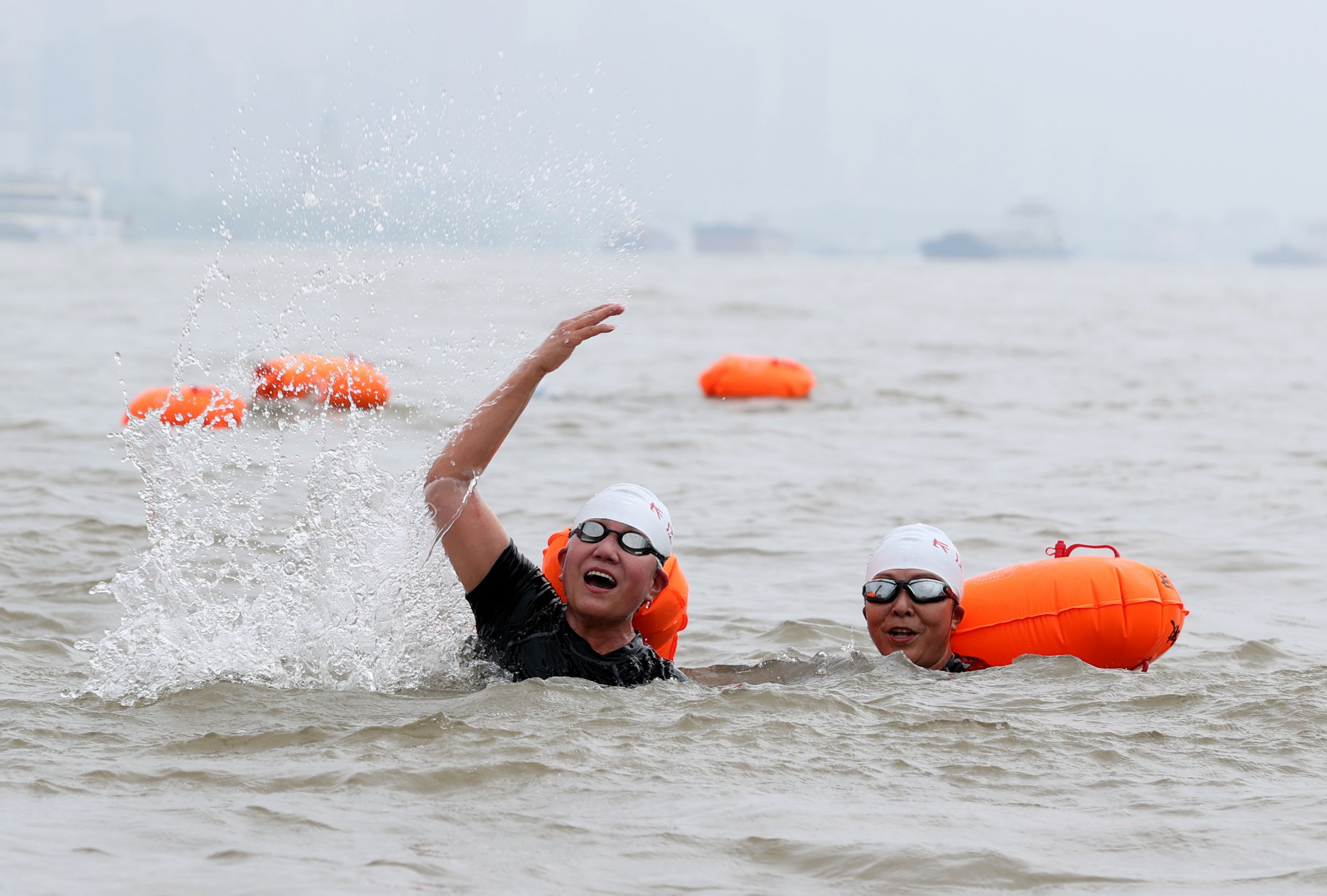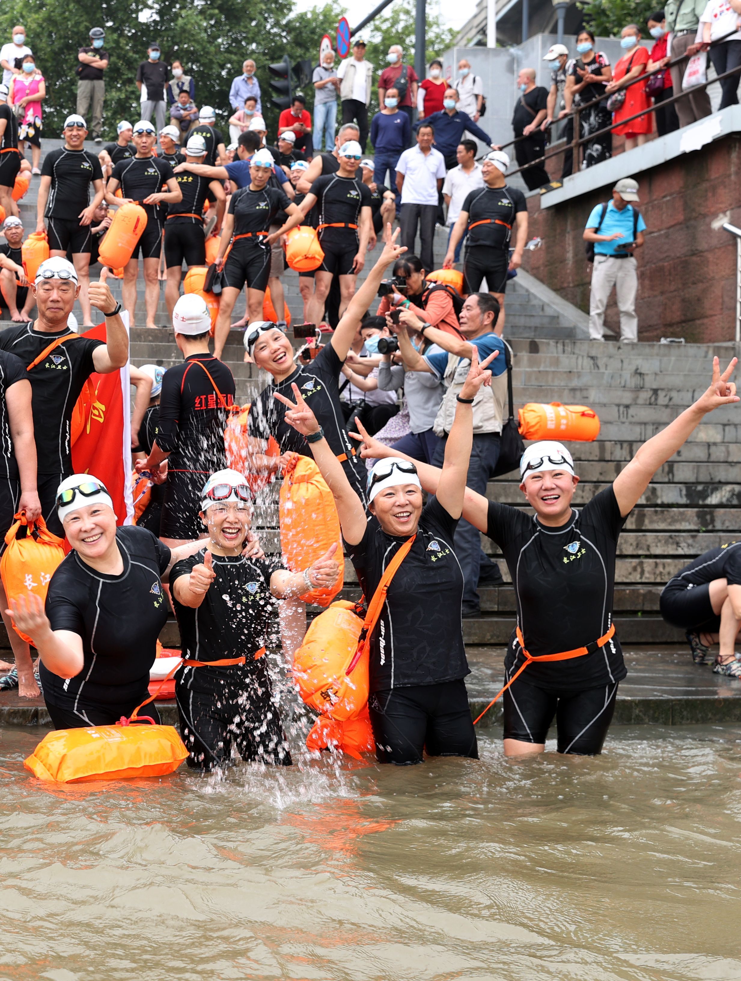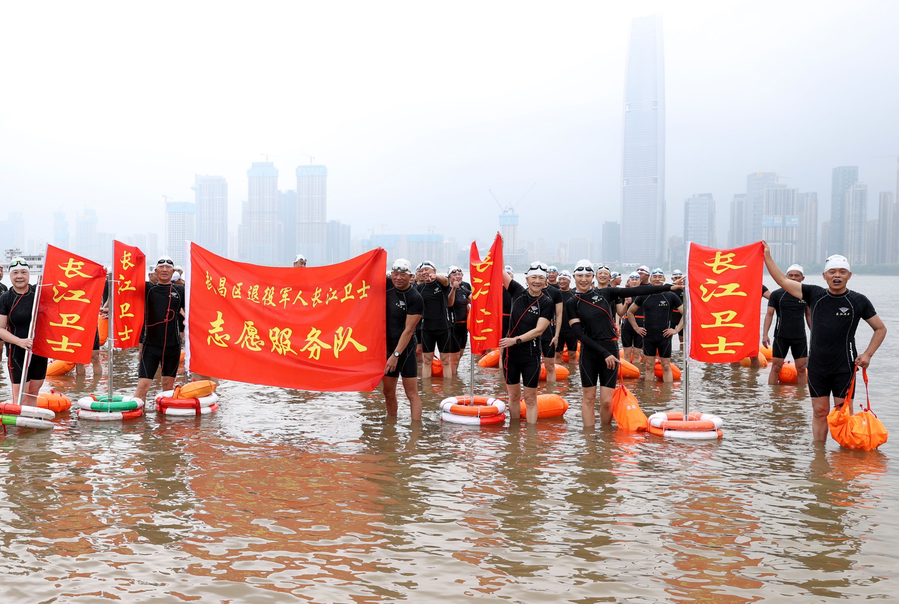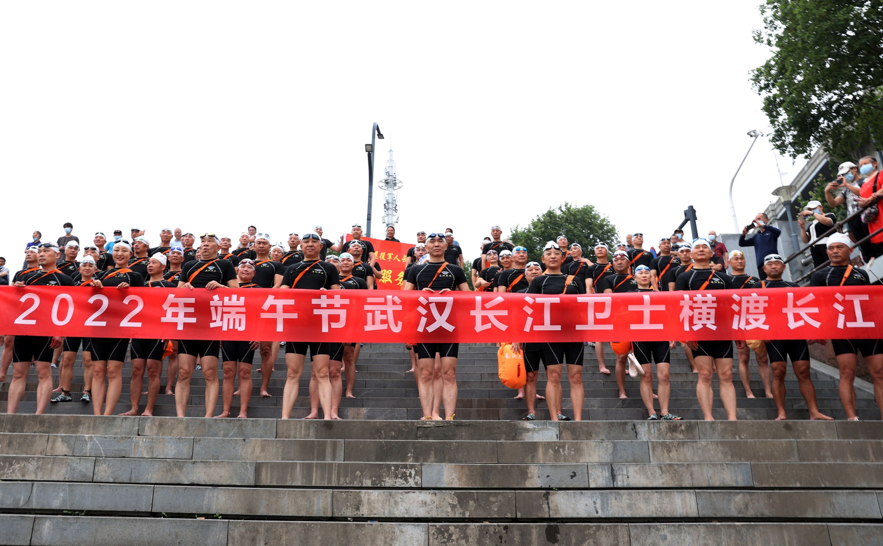长江日报大武汉客户端6月3日讯 6月3日,来自武昌区“长江卫士”志愿服务队的近百名退役军人开展横渡长江活动,以这种特殊方式庆祝端午佳节。大家依次从武昌汉阳门下水,经过近一小时的劈波斩浪,在汉口江滩成功登岸,总长约5000米。