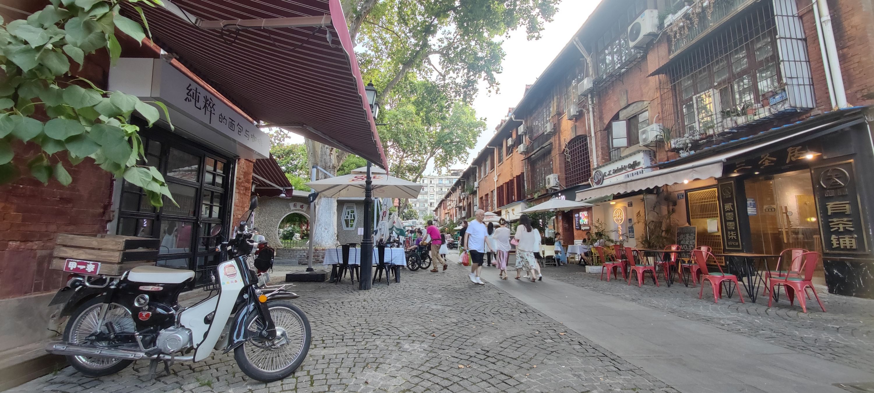 在汉口历史风貌区,市民游客慢游感受城市历史文化。记者黄丽娟 摄