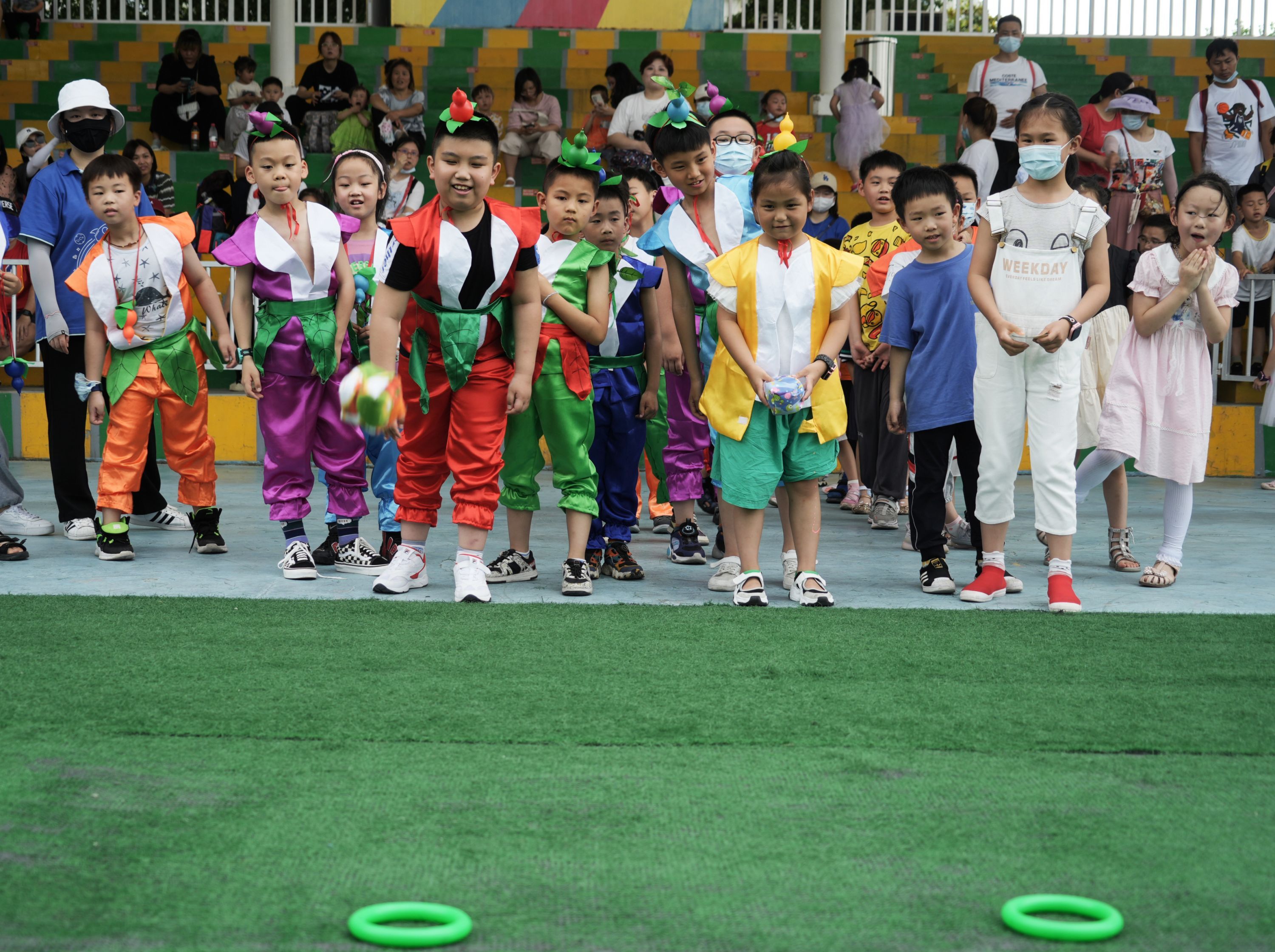 萌娃们化身“葫芦娃”一同游戏。 记者何晓刚 摄