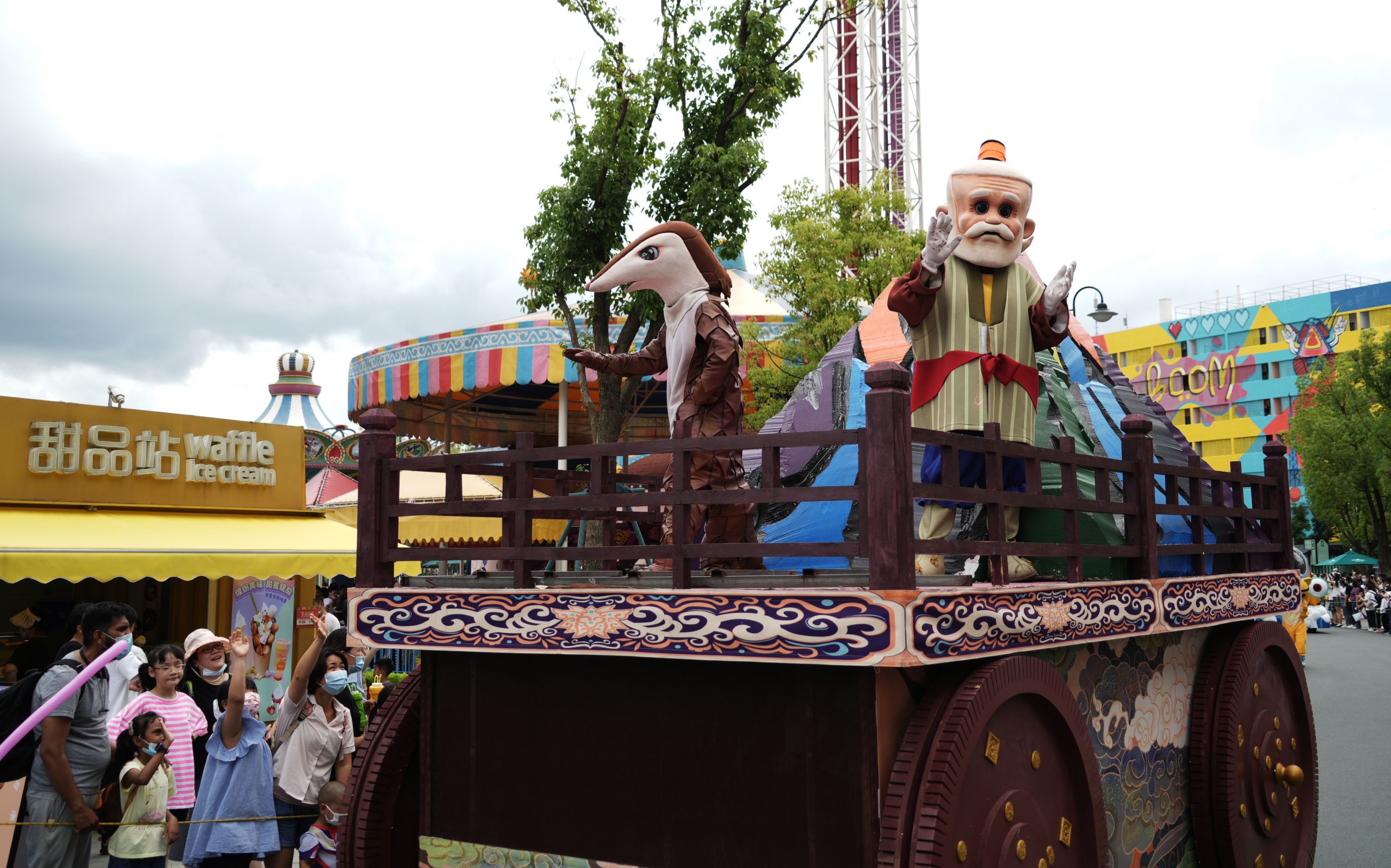《葫芦兄弟》里的卡通人物在欢乐谷内巡游。 记者何晓刚 摄