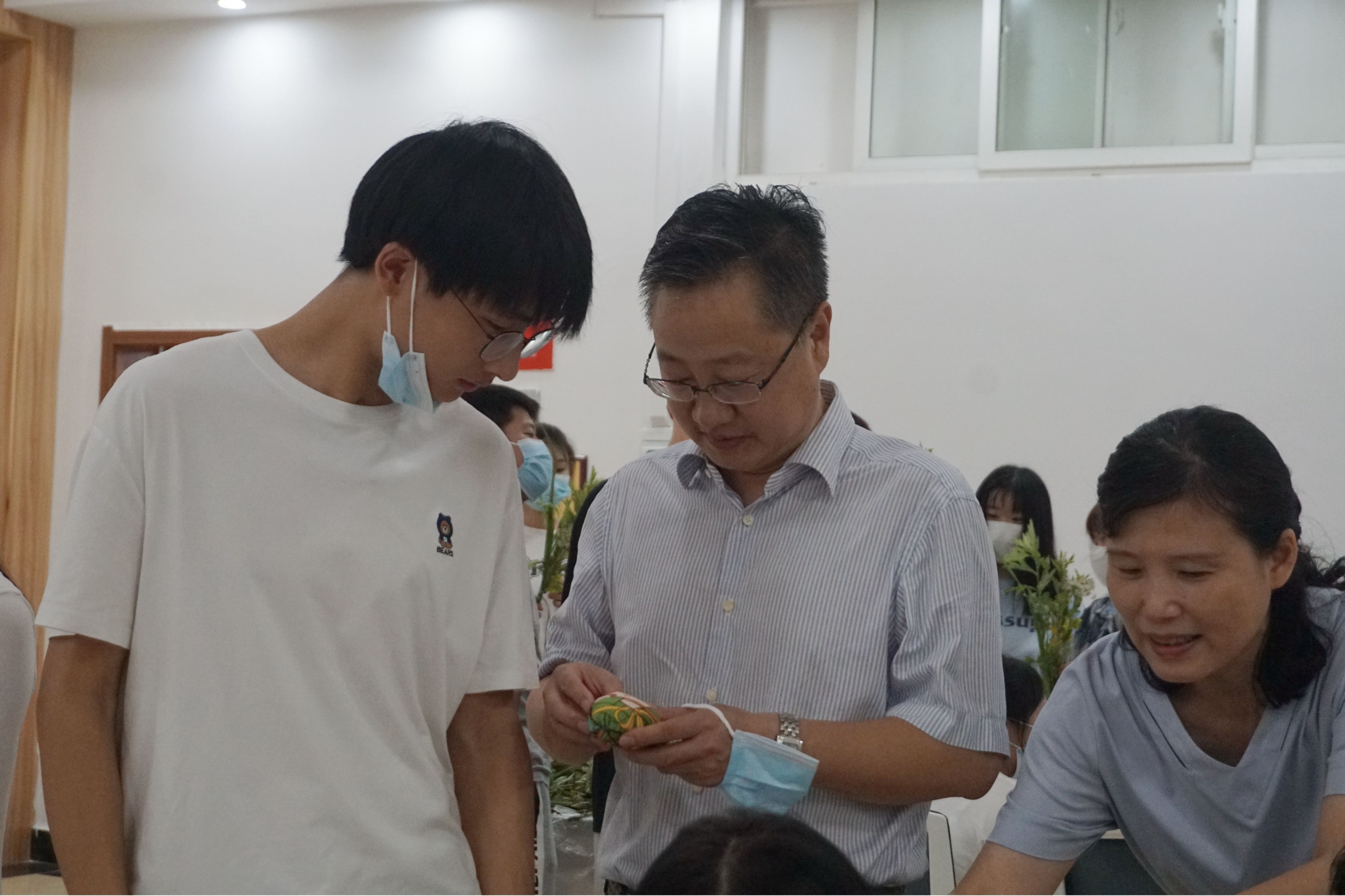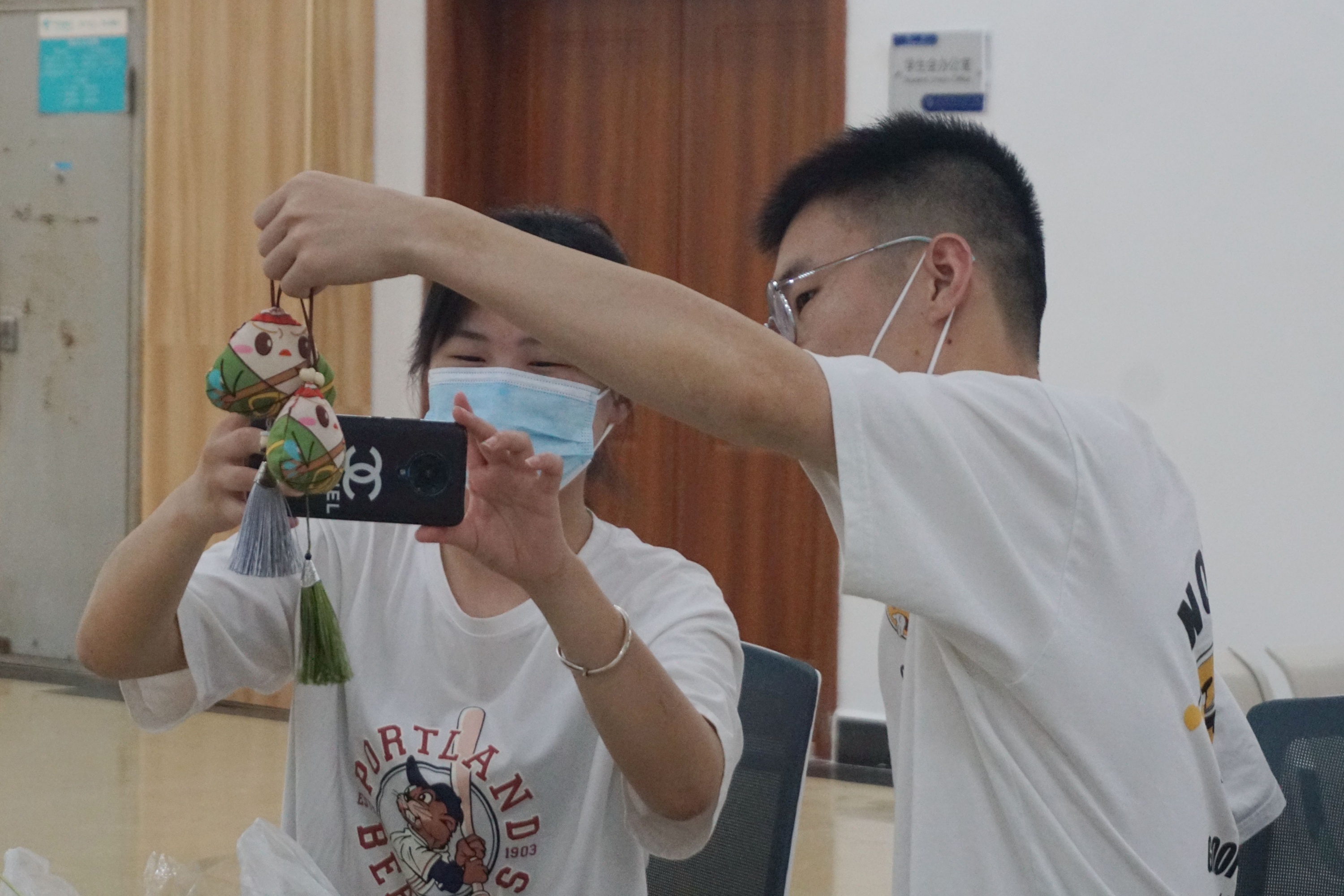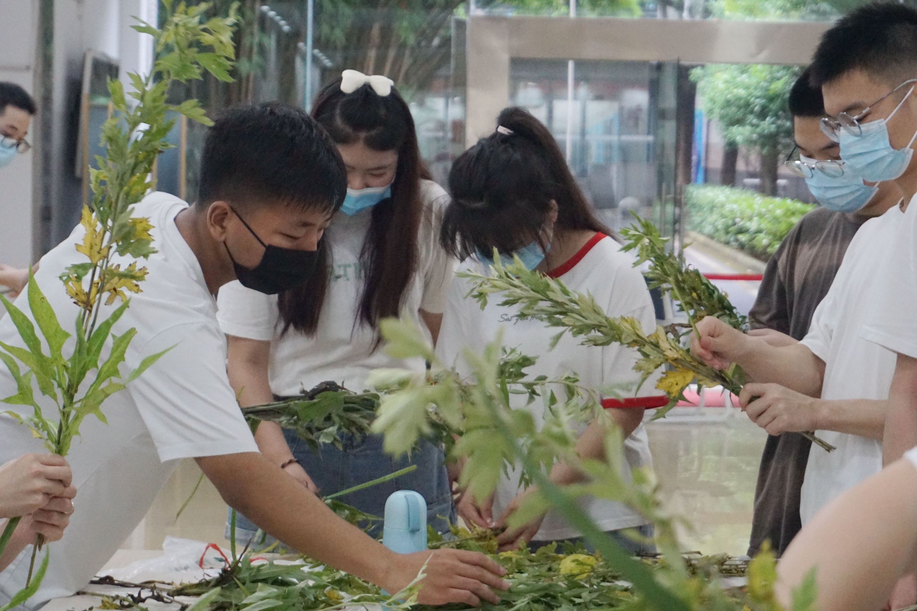 丰富的端午节校园民俗活动在综合楼一楼大厅及四楼多功能厅开展。师生们你教我学,折粽叶、裹叶子、装糯米、捆扎线,一道道工序有条不紊地进行,包得不亦乐乎,大家仿佛回到了家乡,浓浓的温情伴随着粽叶清香沁人心脾。细细挑选,认真搭配,耐心捆扎,一束束艾草犹如花束,握在手中留有余香。而在缝香包现场,男生们更是“须眉不让巾帼”,一针一线慢慢缝来,倒也别有生趣。