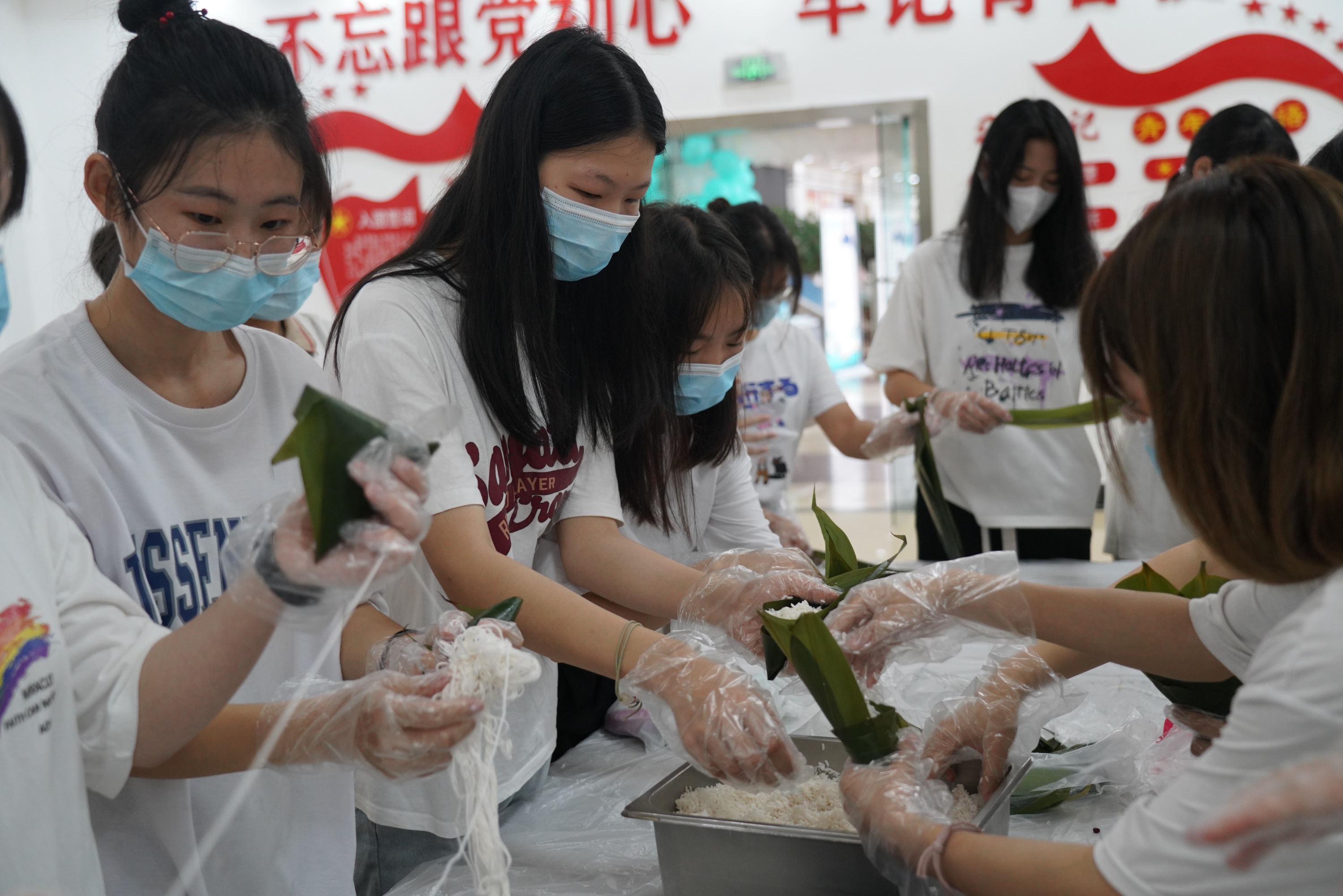 包粽子。本文图片均由武汉软件工程职业学院提供