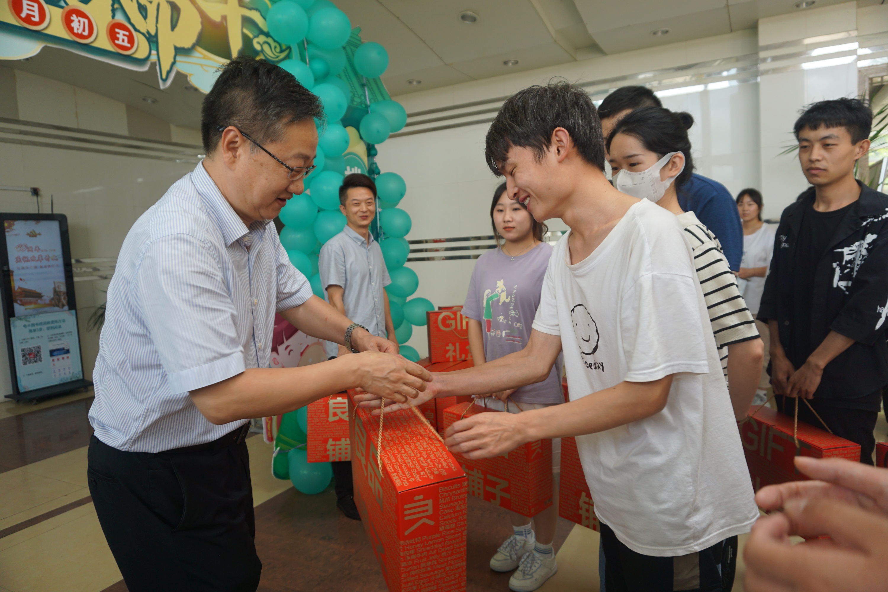 刘前信校长和同学们一起体验端午民俗,并和部分学生代表一同参加“秀湖之约·茶话端午”茶话会。和学校领导、老师一起过端午,同学们非常感动,大家一起聊学习,聊就业,谈人生,谈奉献,畅所欲言。来自新疆的回族学生李京萱首先发言,她对学校资助帮扶表达了真挚的感谢,分享了自己在国家和学校的资助下自强自立的学习和生活情况。艺术设计专业的瞿娇同学说:“接受良好的教育让我的人生有了不一样的可能,我想要提升自己,成为更好的人,将来回到家乡当一名美术教师,帮助更多的孩子。”曾获武汉市政府奖学金、甲等奖学金的大三学生、软件技术专业的衡赞更是献出了自己的经验:“一定要重视专业课,这样不管是继续深造还是就业,都会更有底气。学校的产教融合做得很深入,学校和企业联手为我们提供了全真的学习环境,大家一定要好好珍惜。”刘前信校长代表学校向同学们送上节日的问候和端午节礼,就同学们关心的问题一一进行了解答,并鼓励大家一定要学好经典,练好身体,交好朋友,在学校把基础打扎实,未来获得更好的成长。