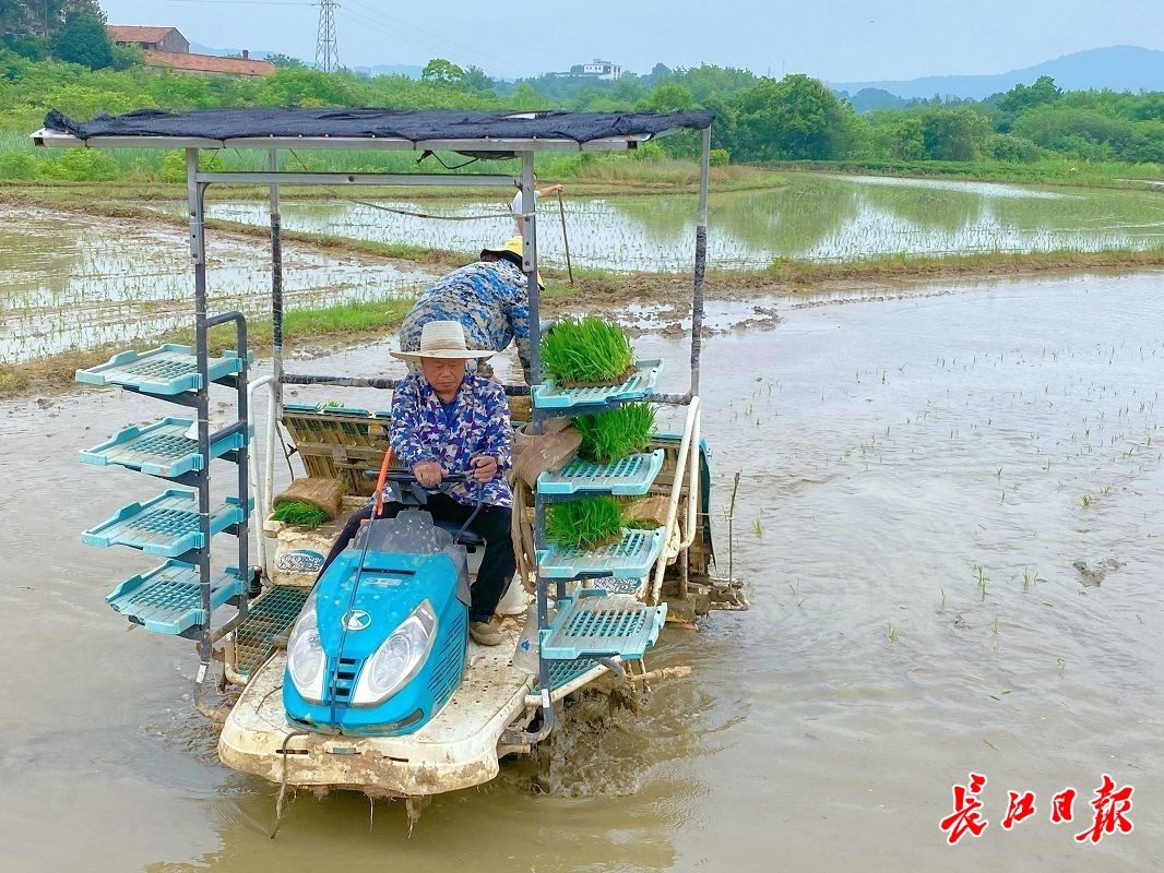 长江日报大武汉客户端6月5日讯 “种田能让大家伙都有事做,有饭吃,很稳定,再累都觉得值。”说这话时,赵治鹏正从插秧机上下来,裤腿上星星点点的泥巴是机器在田里打转时溅到身上的。在一旁的是跟着他干了多年农活的魏燕和王前武,两人都是脱贫户。