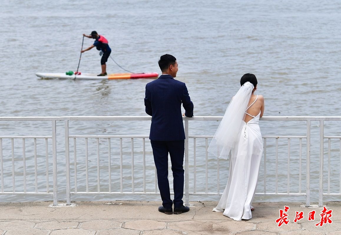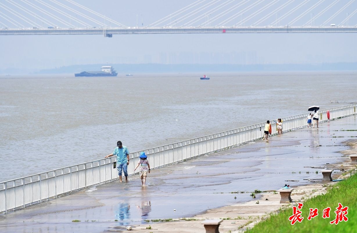 长江日报大武汉客户端6月5日讯 6月5日,在武昌江滩铁机路码头水域,上涨的江水已经漫上亲水平台。在汉口江滩,临水区域已经拉上警戒绳,并立起了警告牌。截至18时,长江汉口水位24.21米,距离设防水位0.79米。(长江日报记者喻志勇 摄影报道)