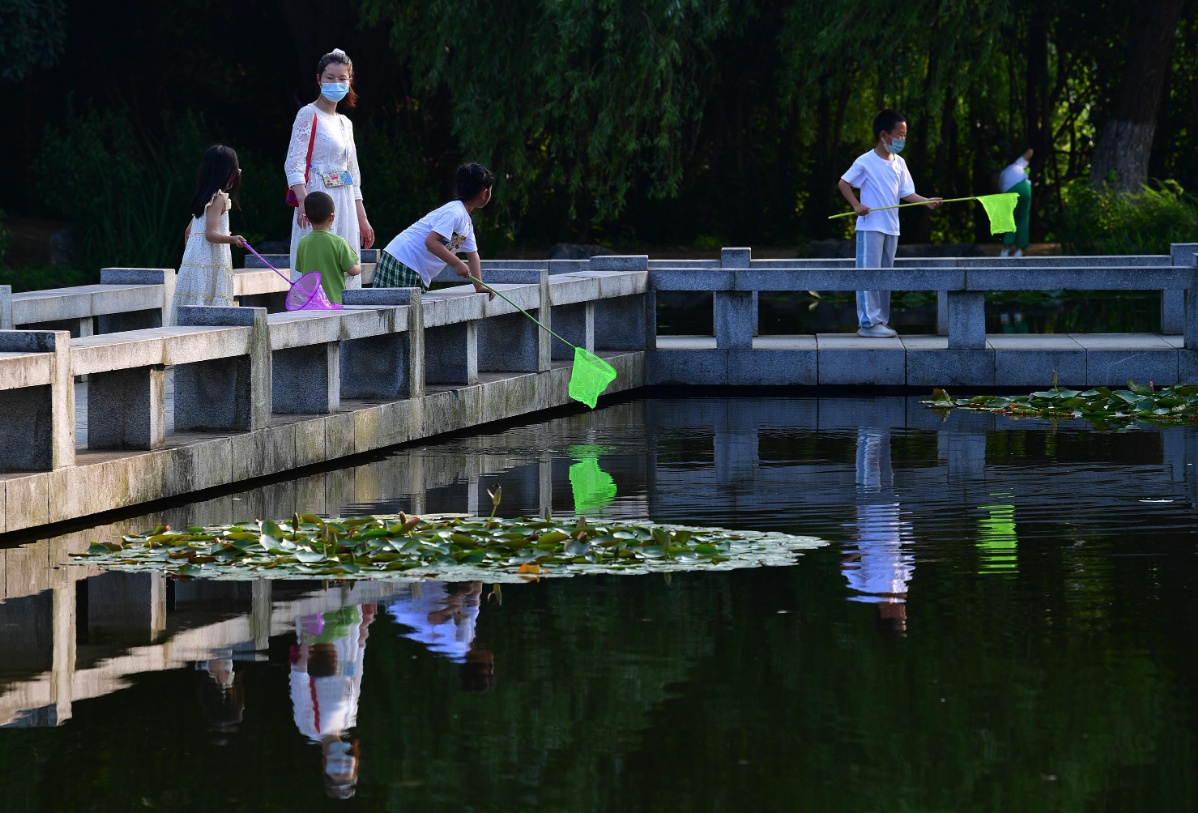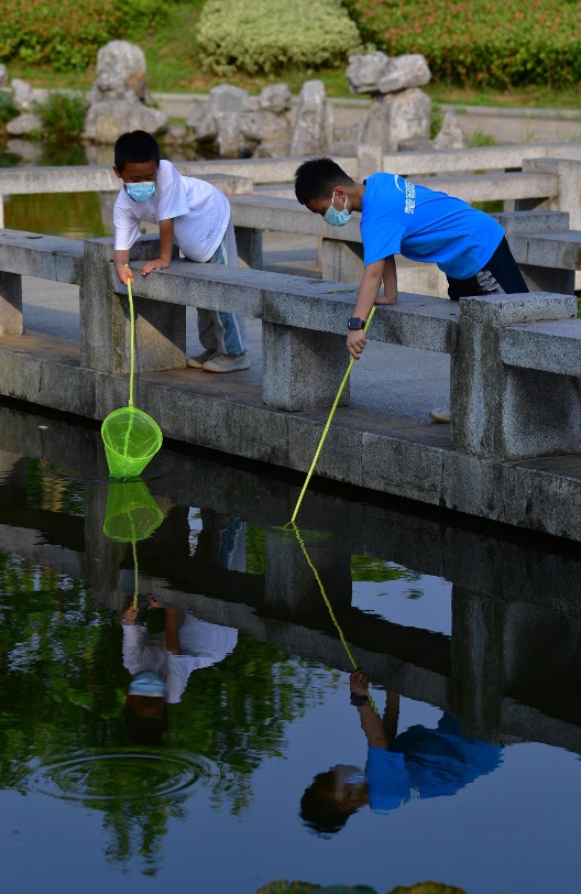 长江日报大武汉客户端6月5日讯 6月5日下午,金银湖湿地公园仍有不少市民带着孩子前来,抓住假期的尾巴快乐玩耍。不少孩子手持抄网,在湖边来回奔走,寻找蜻蜓和各种小鱼。虽然鲜有捕获,一个个仍玩得不亦乐乎。