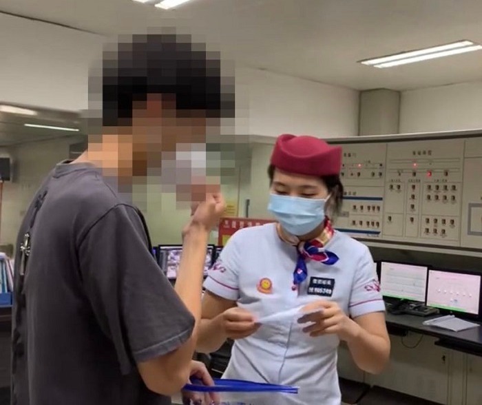 3号线兴业路站工作人员把找到的准考证交还给考生。通讯员闫克昂供图