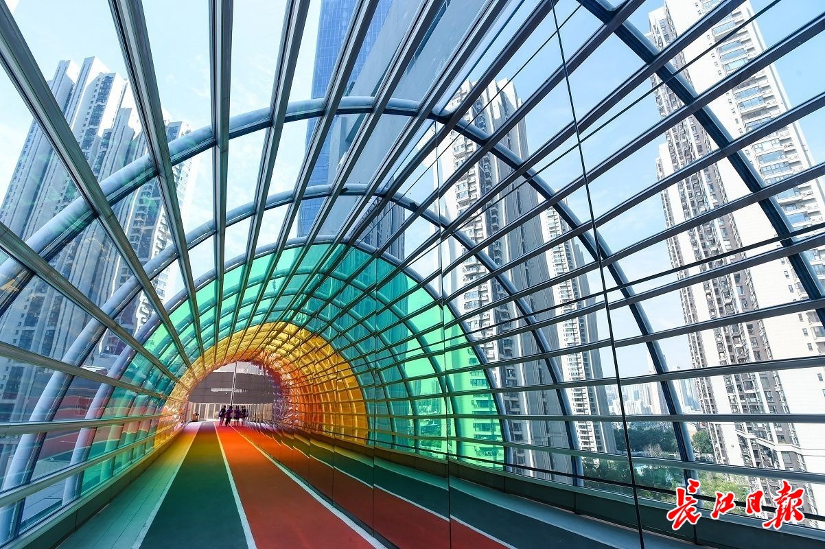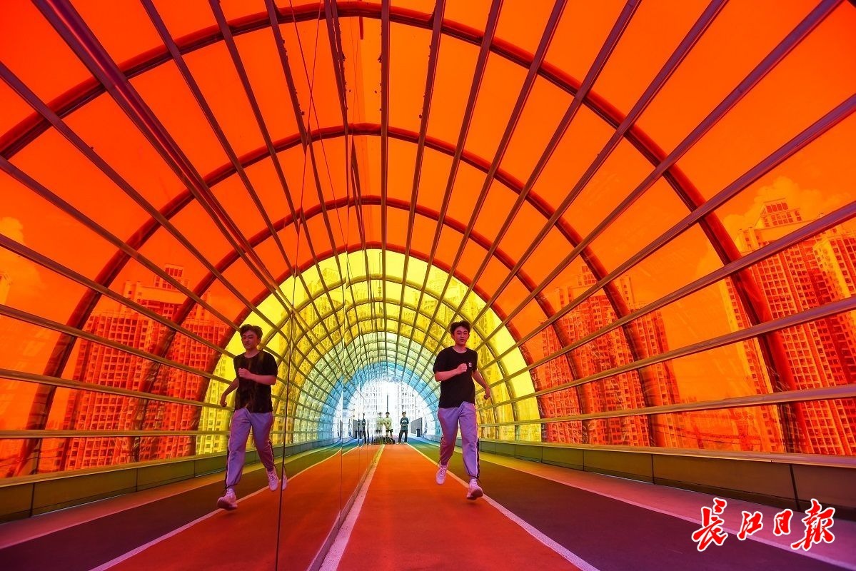 长江日报大武汉客户端6月6日讯 6月6日,记者在汉阳某购物中心楼顶发现一条“空中彩虹跑道”。跑道整体设计让人眼前一亮,因为在楼顶,虽在中心城区但闹中取静,在上面慢跑锻炼感受非常不一般。(长江日报记者许魏巍 摄影报道)