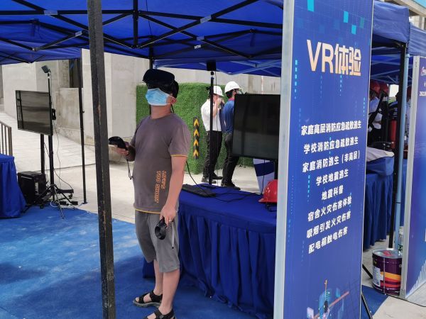 而在现场体验区内,施工人员戴上VR眼镜就置身于一场真实的地震现场,只有正确操作、合理避险,才能获救。这场虚拟体验充分调动人的视觉、听觉、触觉,帮助施工人员了解地震来临时避险的正确举措。