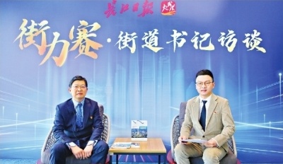 长江日报今起推出大型全媒体新闻访谈栏目《街力赛——武汉街道书记访谈》,江岸区新村街道党工委书记刘舰(左)做客长江日报直播间。