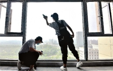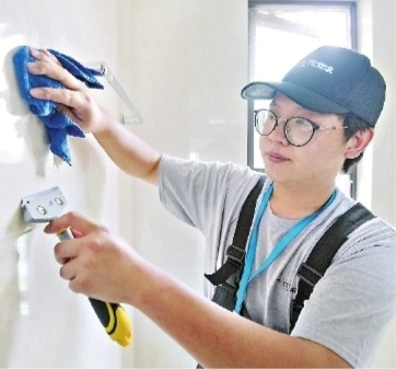 张小姐的房子为三室两厅,面积约130平方米。那天,入行时间不长的吴鹏飞负责对一间卧室做深度保洁,吴江则把最“麻烦”的卫生间留给自己负责。
