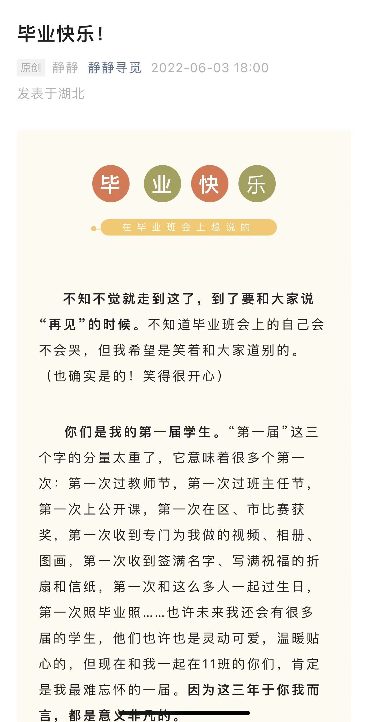 在最新的一篇日志上,卢文静写道——“高考过后,你们将走向一片新的天地,你们会有新的、别样的人生体验。步入大学,走向社会,那里魅力无穷,我也还只经历了其中的一小部分,但已经遇上了特别可爱、特别温暖的你们,你们的未来更值得去期待。”