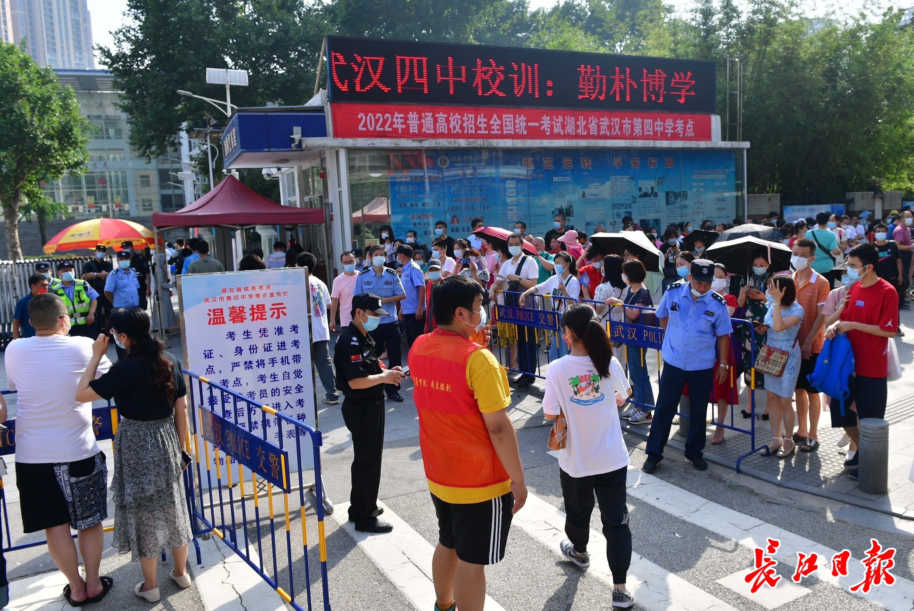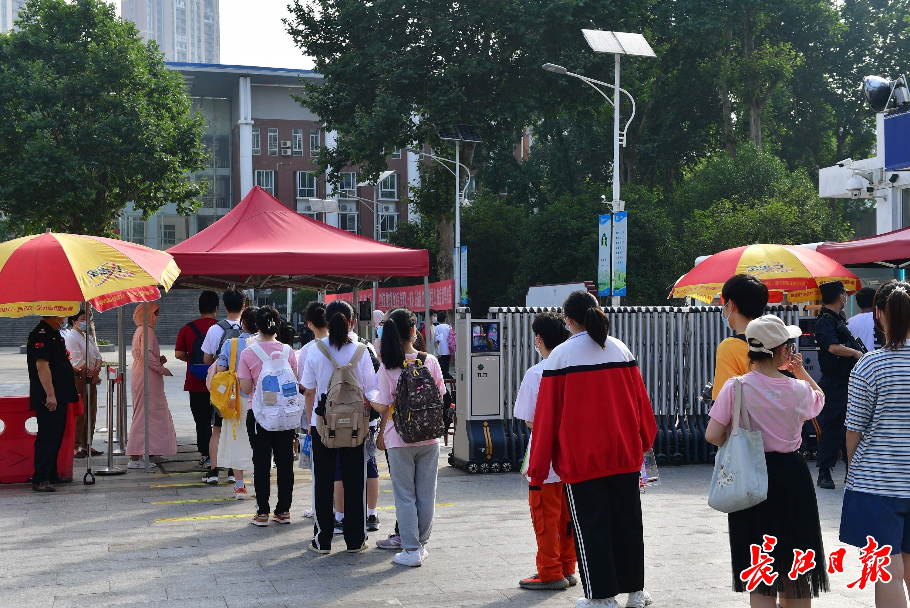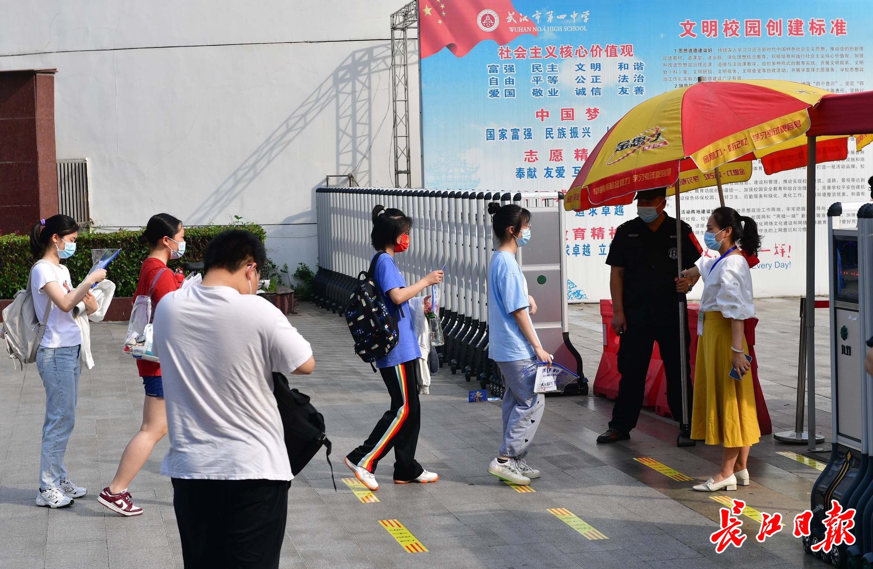 高考首日(6月7日),在武汉四中考点,考生有序排队进入考场。