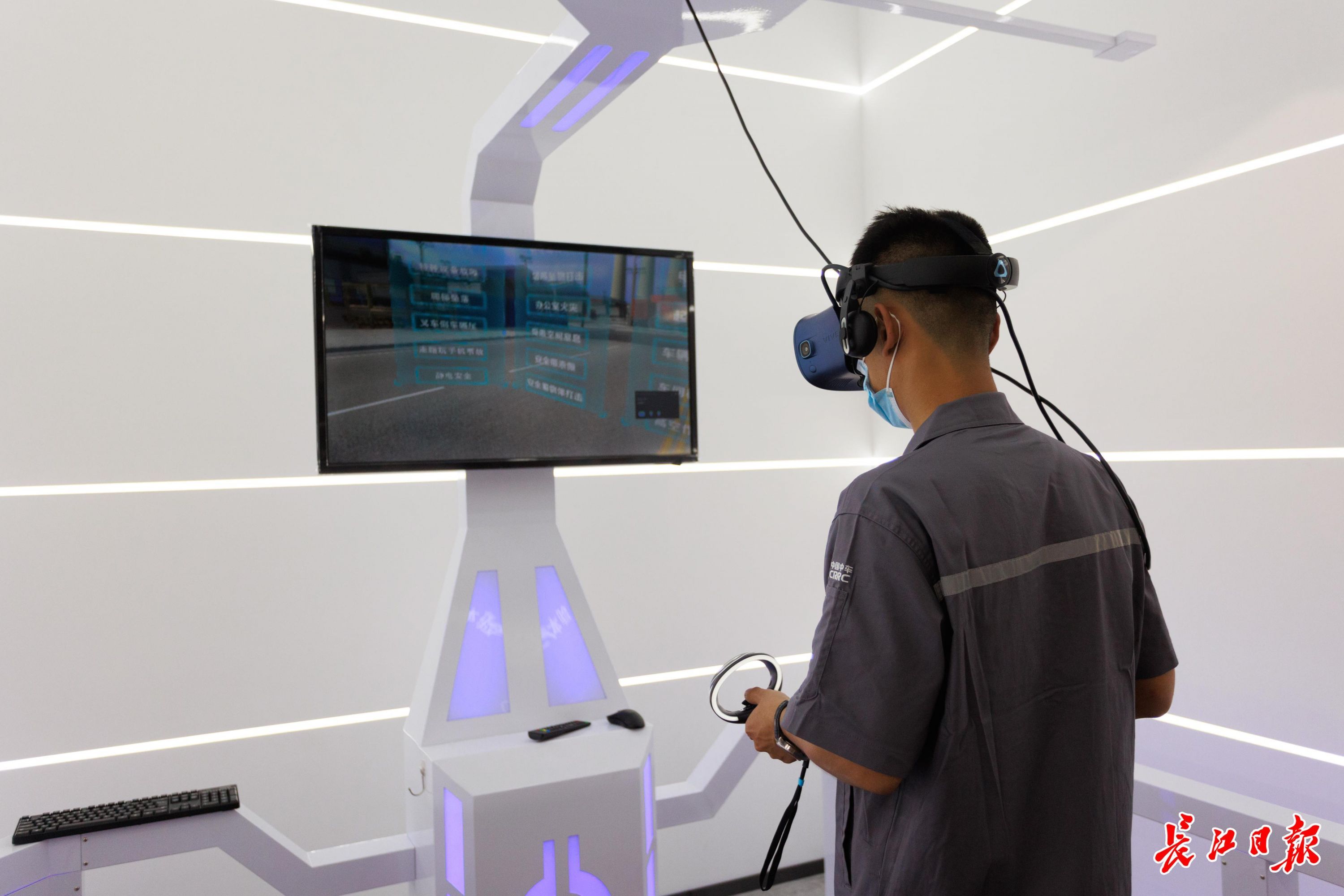 在安全生产体验环节,众人走进武汉中车长客本质安全文化中心,这里有粉尘气体爆炸、触电过载短路、物体划伤等多种安全体验装置,参观者通过VR互动行走平台、VR蛋椅、虚拟叉车等多种仿真设备“身历其境”学习各种安全知识。在VR互动行走平台,参观者戴上VR眼镜,选择塔吊坠物打击、高空坠落、危化品存放不当等多种安全风险场景,全景体验并按提示做出正确应对。在焊工实操模拟装置前,参观者选择对应的焊机,戴上保护面罩进行虚拟作业,根据焊枪的位置、速度、角度等,屏幕上实时生成虚拟焊缝和火花,真实感十足。“这里的场景非常贴近企业实际,很注重细节和体验感,对于我们企业搞好安全生产很有帮助。”武汉市图腾工贸发展有限公司负责人孙幼清深有感触。