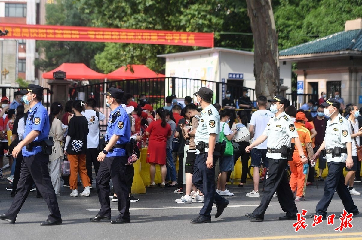 6月7日,武汉市第二中学考点,城管队员7时30分前就已到岗,展开保障工作。长江日报记者周超 摄