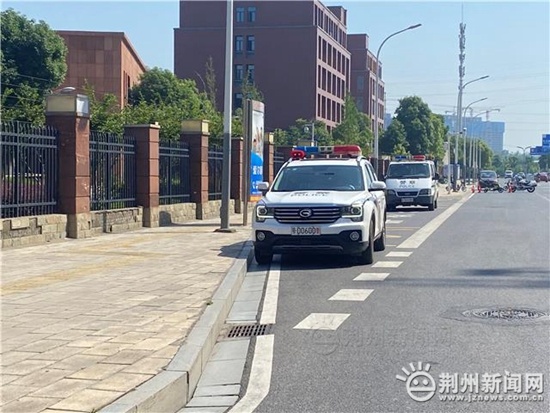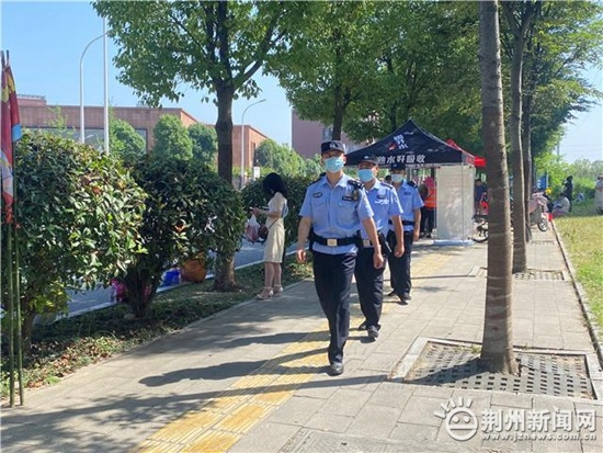 承担沙市中学考点安保任务的是沙市区公安分局关沮派出所民警,此次共出动警力12人次,出动警车两辆。虽然天气炎热,但民警们一刻没有休息,考生进入考场后,民警则对考生的家长进行了反诈宣传教育告知,推广安装反诈APP,提高防骗意识。
