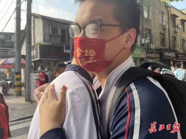 8时左右,考点门口的考生越来越多,不少省实验中学的考生认出了这位学校的“大神级”学生,但不论学生、家长还是老师,都亲昵地叫泮忆铭为“泮泮”。“泮泮”不停地给同学们递上棒棒糖,不时地跟他们击掌、拥抱。“在学校他很有名,大家都认识他,有他送的祝福和棒棒糖,这真是高考第一天的惊喜!”手拿棒棒糖,顺便还跟“泮泮”来了一个“熊抱”,学生们都开心不已。