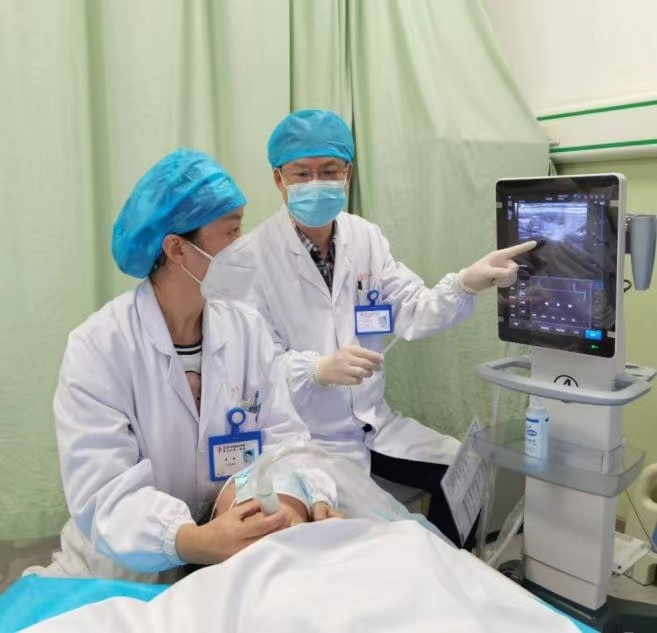 医生给王女士检查确诊肿块为甲状腺结节囊内出血。